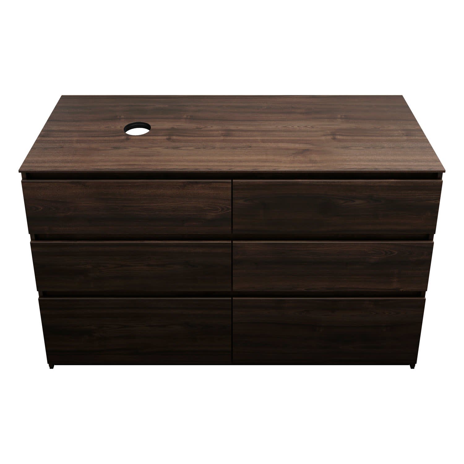burgbad Lin20 Waschtischunterschrank mit Konsolenplatte 140 cm, 6 Auszüge, Beckenausschnitt links