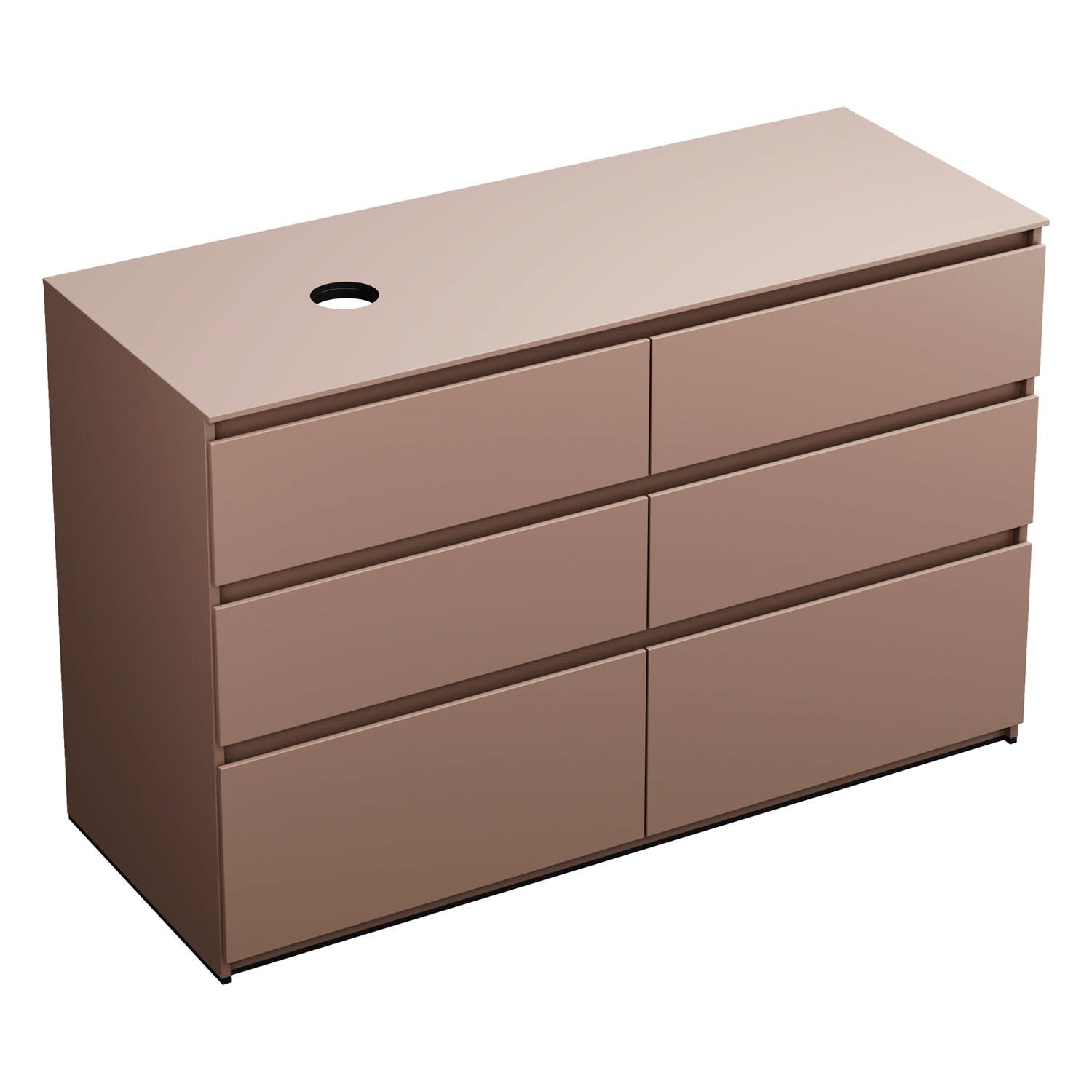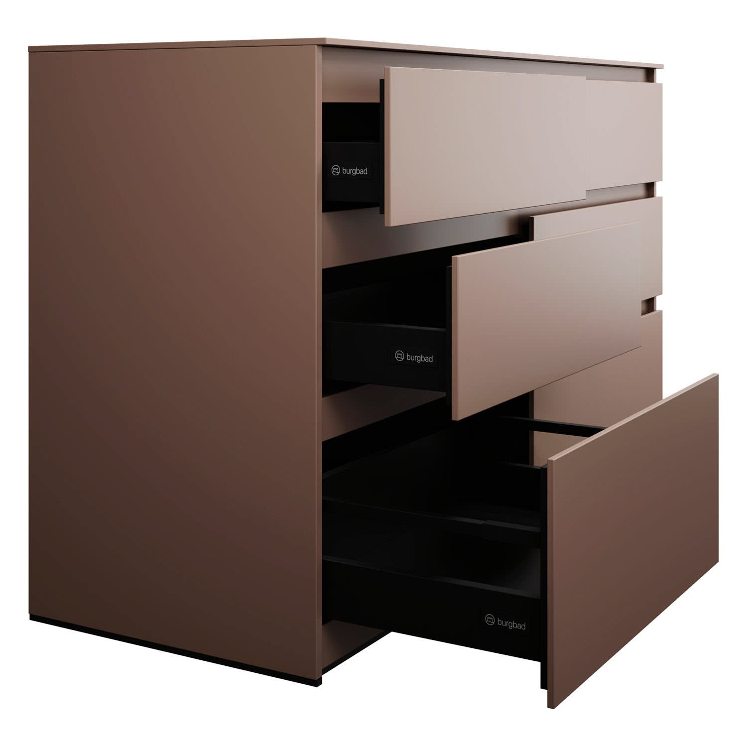 burgbad Lin20 Waschtischunterschrank mit Konsolenplatte 140 cm, 6 Auszüge, Beckenausschnitt links