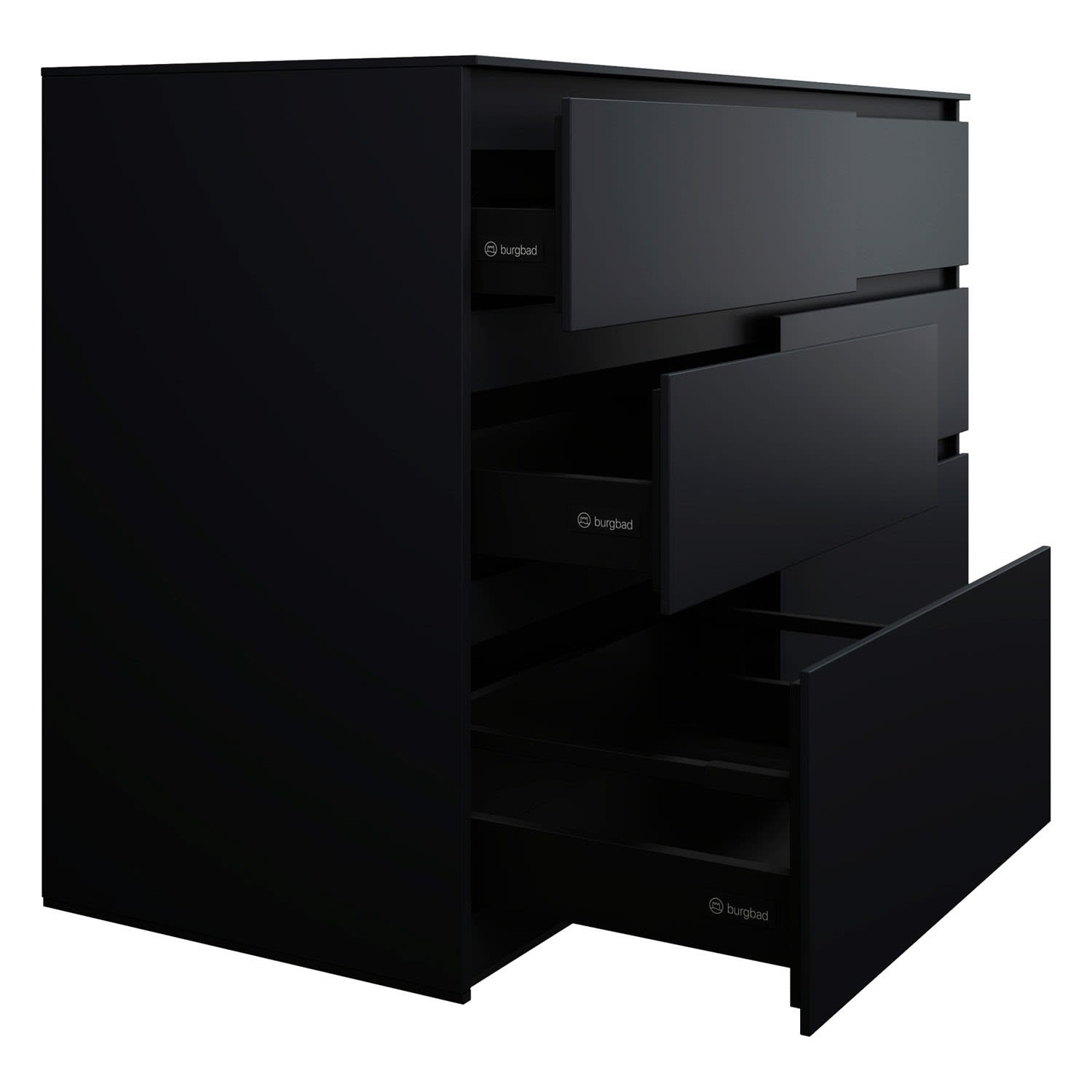 - Vollauszug mit geräuscharmem Selbsteinzugsmechanismus inklusive Anschlagdämpfung (Silent System)