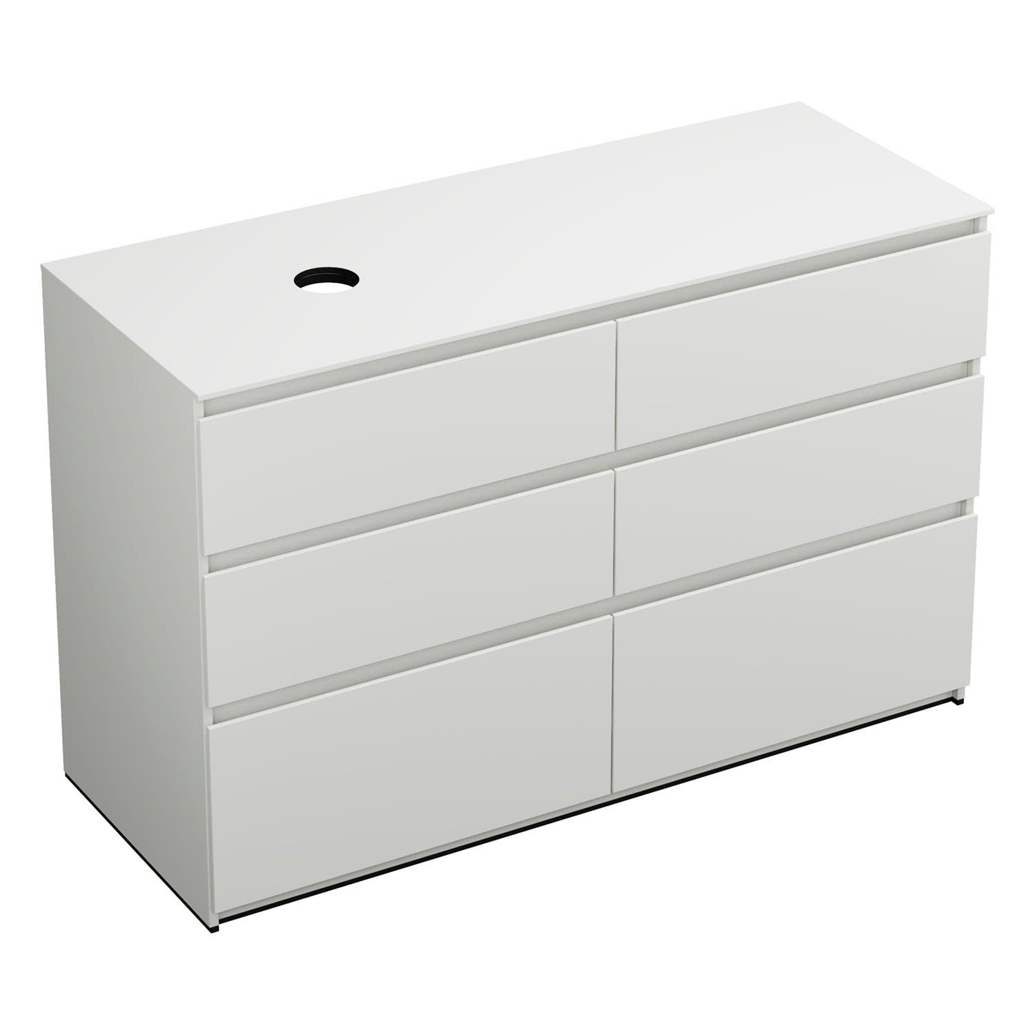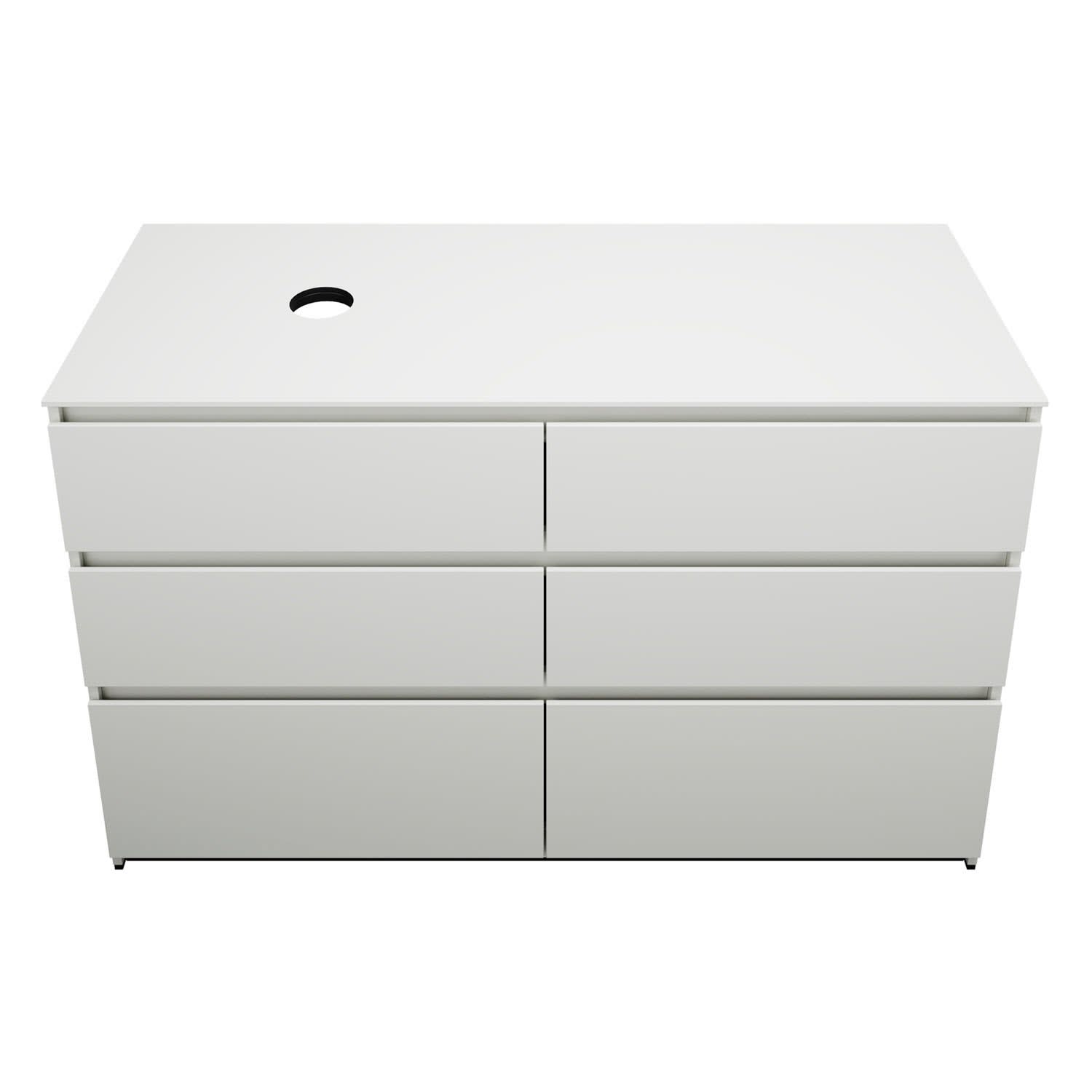 burgbad Lin20 Waschtischunterschrank mit Konsolenplatte 140 cm, 6 Auszüge, Beckenausschnitt links