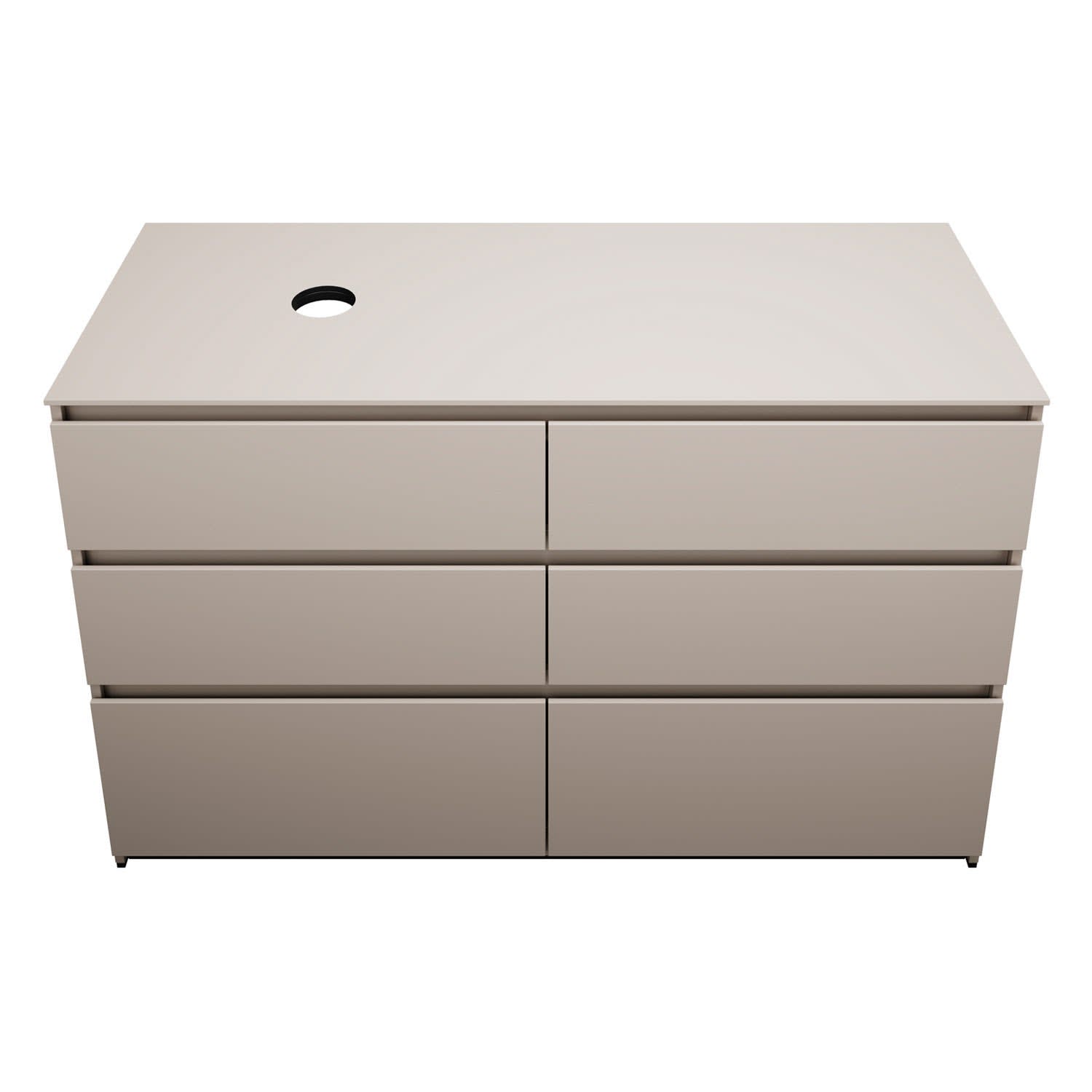 - Position Beckenausschnitt in der Tiefe: mittig bei Becken ohne Wandbefestigung oder wandbündig bei Becken mit Wandbefestigung (Bitte bei Bestellung den gewünschten Waschtisch mit angebeben.)