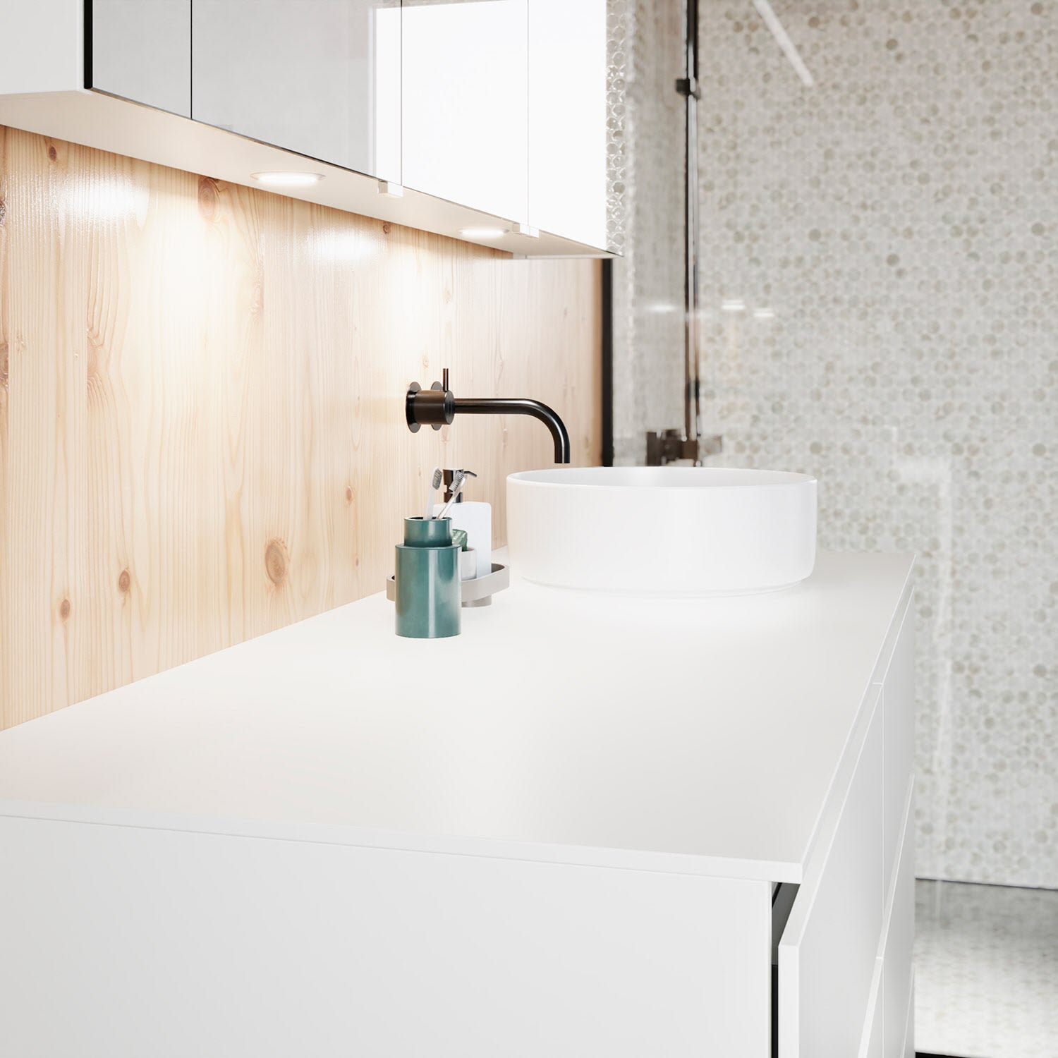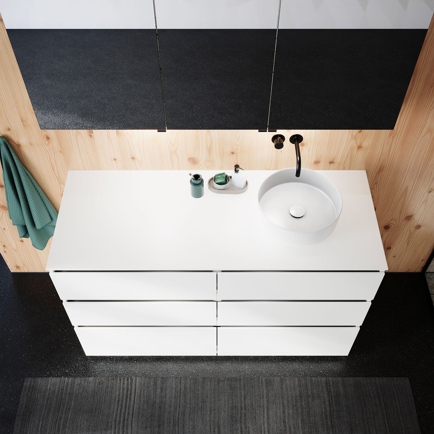 Die Waschtischplatte wird ohne Armaturbohrung geliefert. Armaturbohrungen müssen bauseits vorgenommen werden.