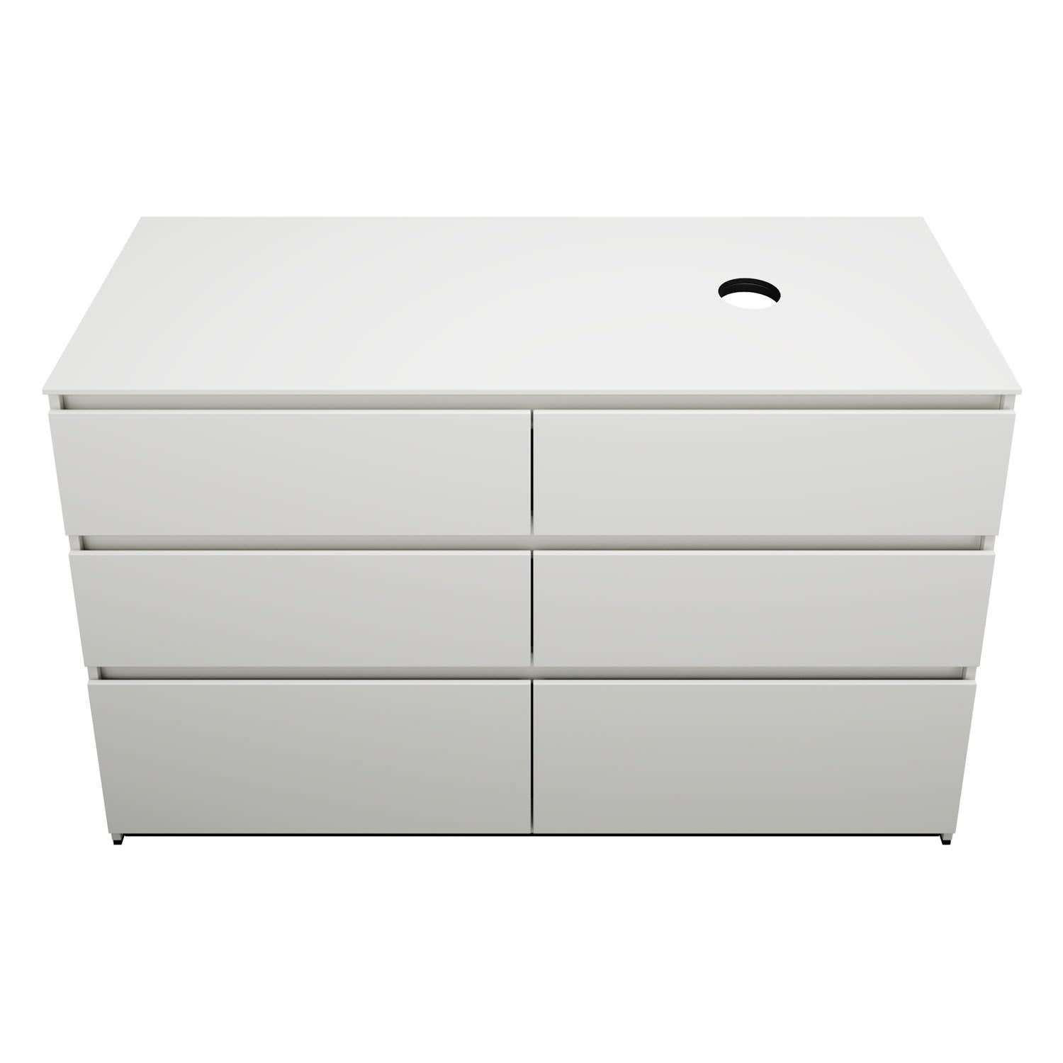 burgbad Lin20 Waschtischunterschrank mit Konsolenplatte 140 cm, 6 Auszüge, Beckenausschnitt rechts