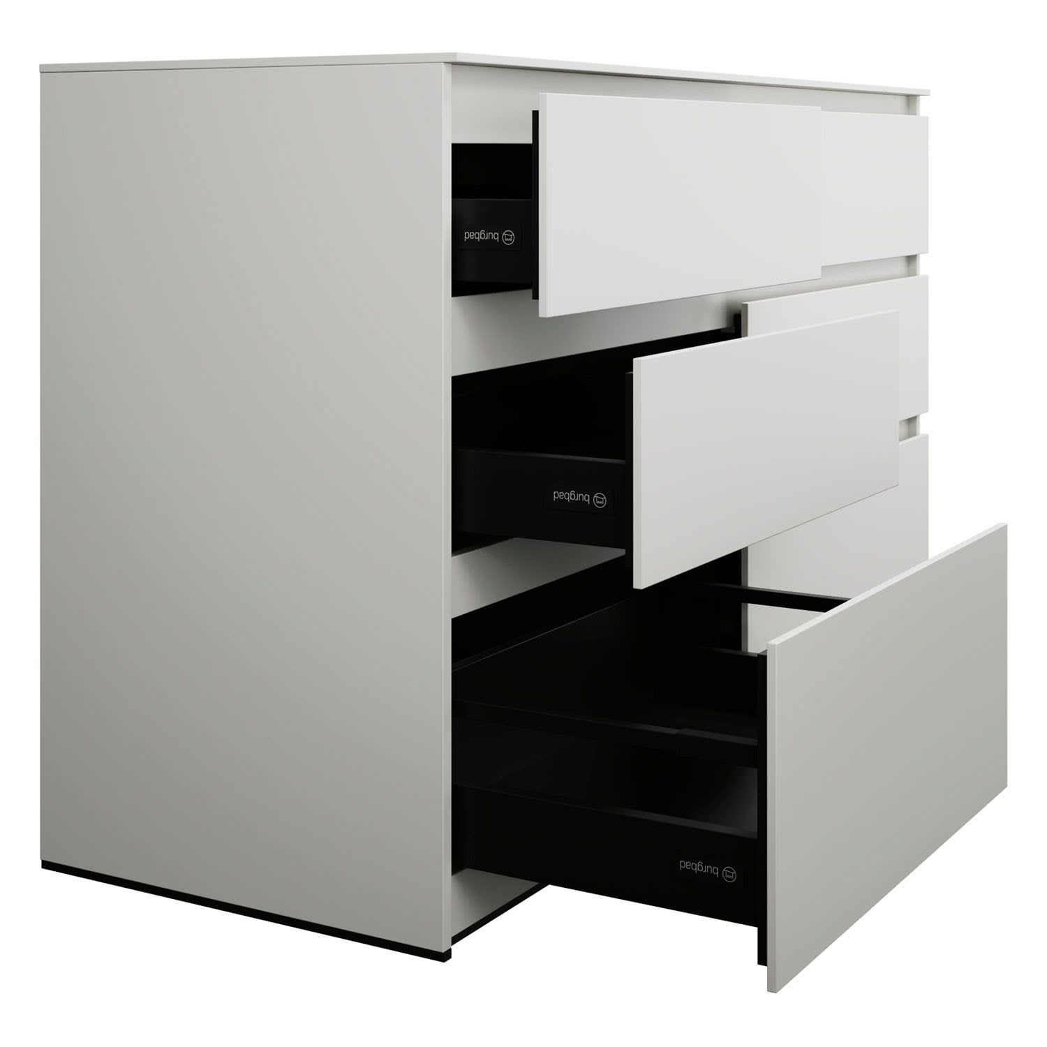 - Vollauszug mit geräuscharmem Selbsteinzugsmechanismus inklusive Anschlagdämpfung (Silent System)