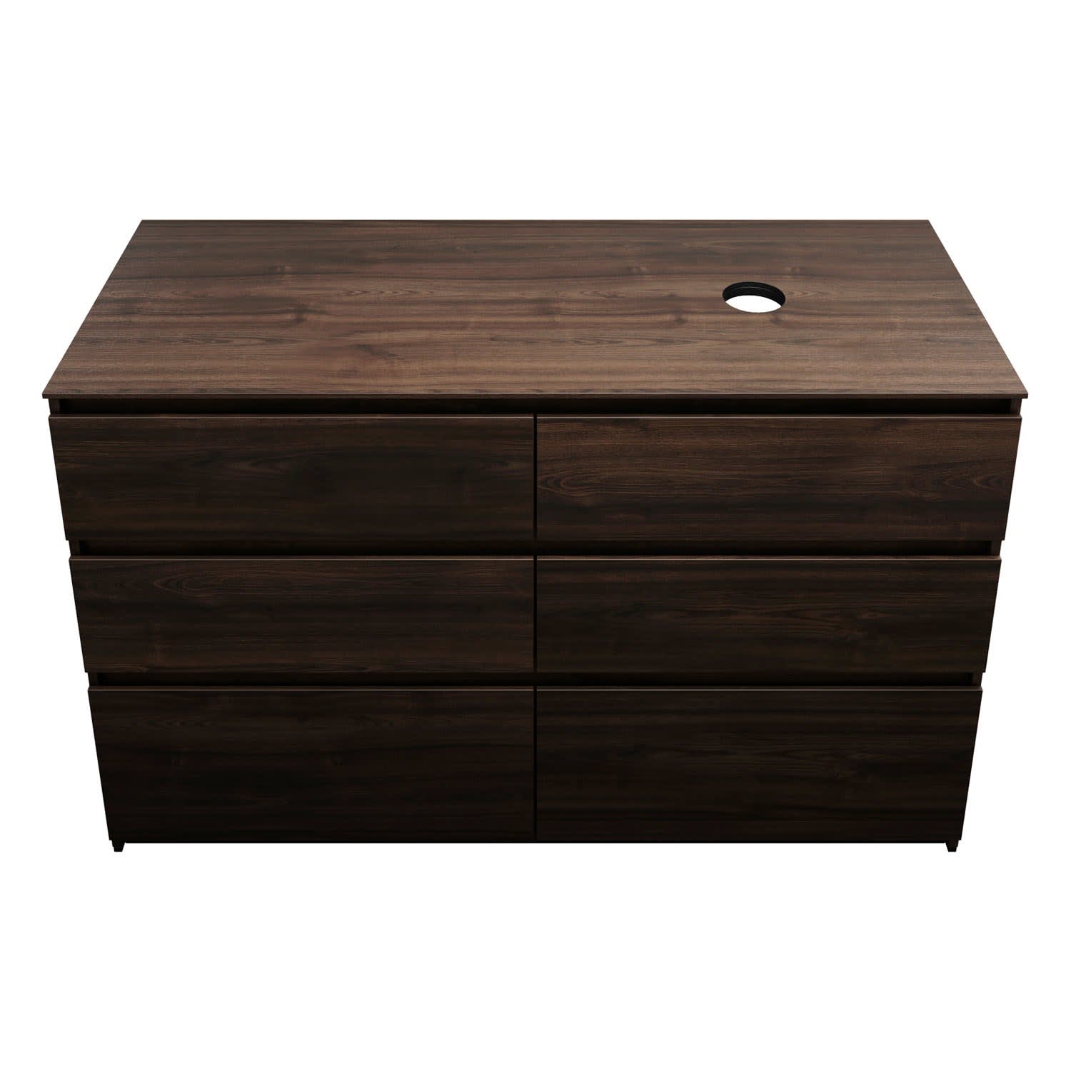 burgbad Lin20 Waschtischunterschrank mit Konsolenplatte 140 cm, 6 Auszüge, Beckenausschnitt rechts