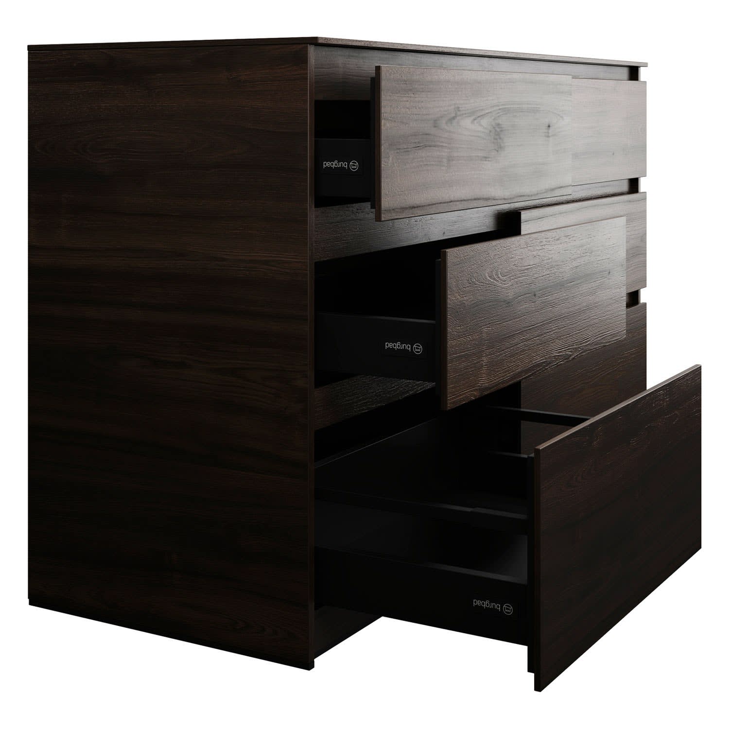 - 2 Auszüge oben H: 22 T: 35 cm, 1x mit Siphonausschnitt und Inneneinteilung