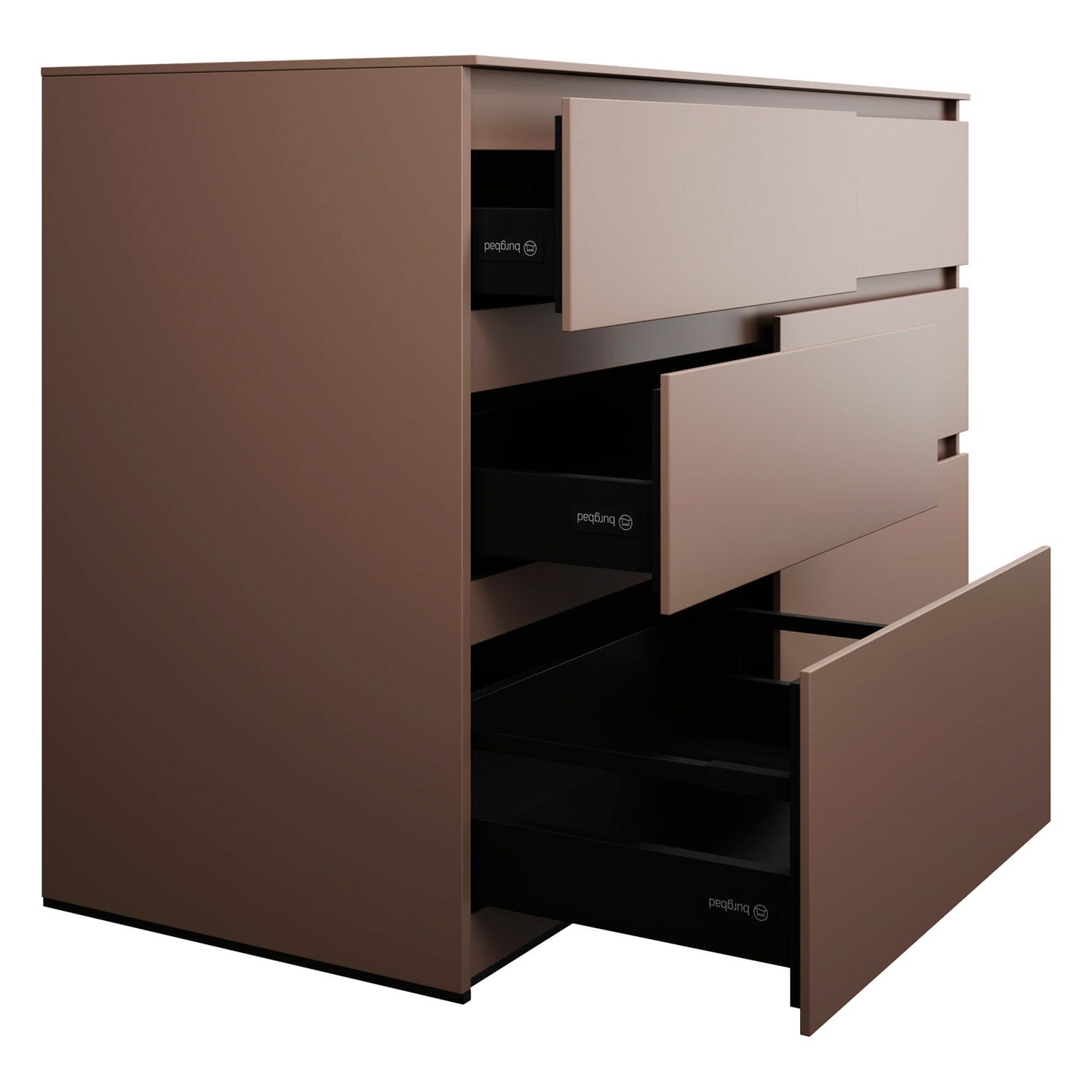 - Vollauszug mit geräuscharmem Selbsteinzugsmechanismus inklusive Anschlagdämpfung (Silent System)