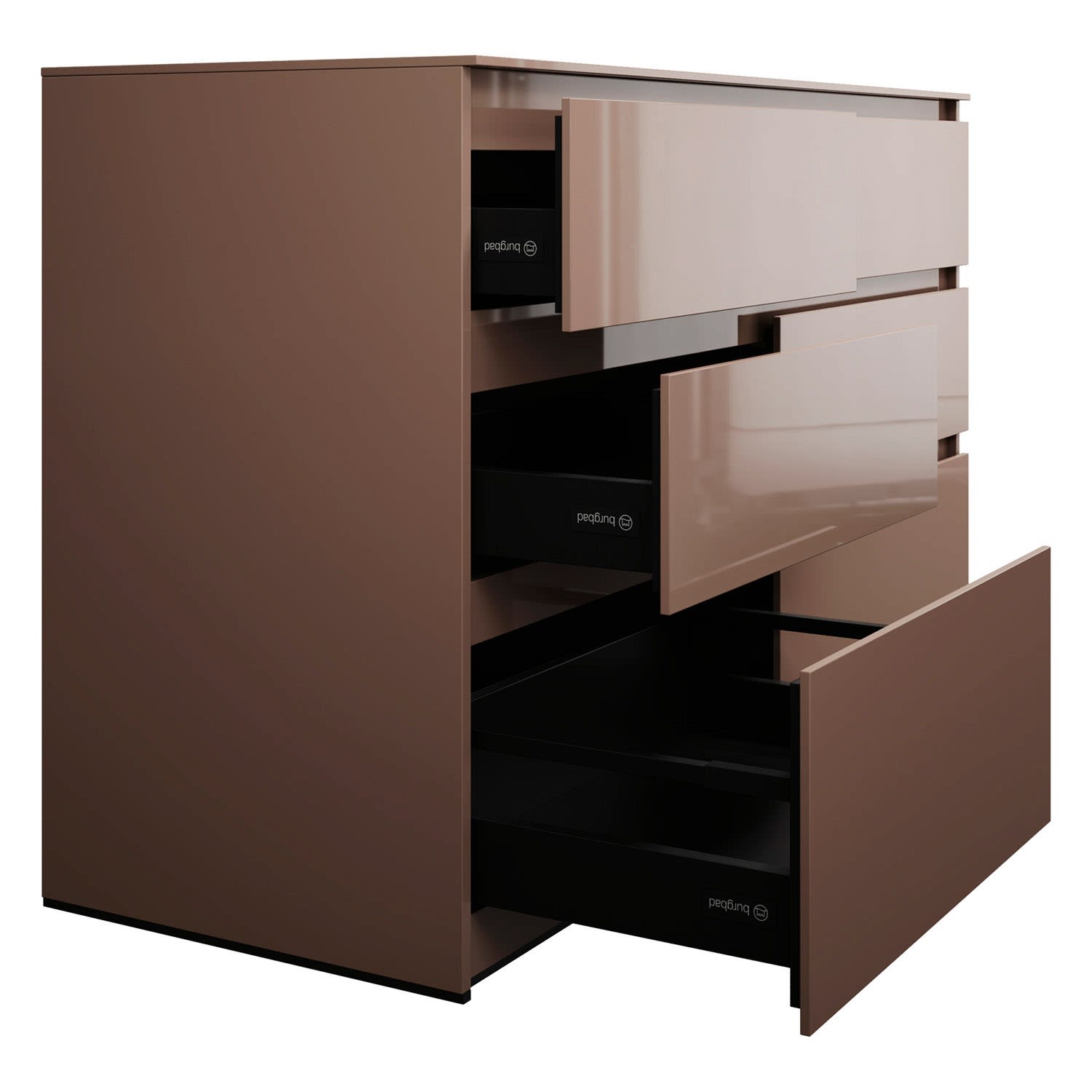 - Vollauszug mit geräuscharmem Selbsteinzugsmechanismus inklusive Anschlagdämpfung (Silent System)