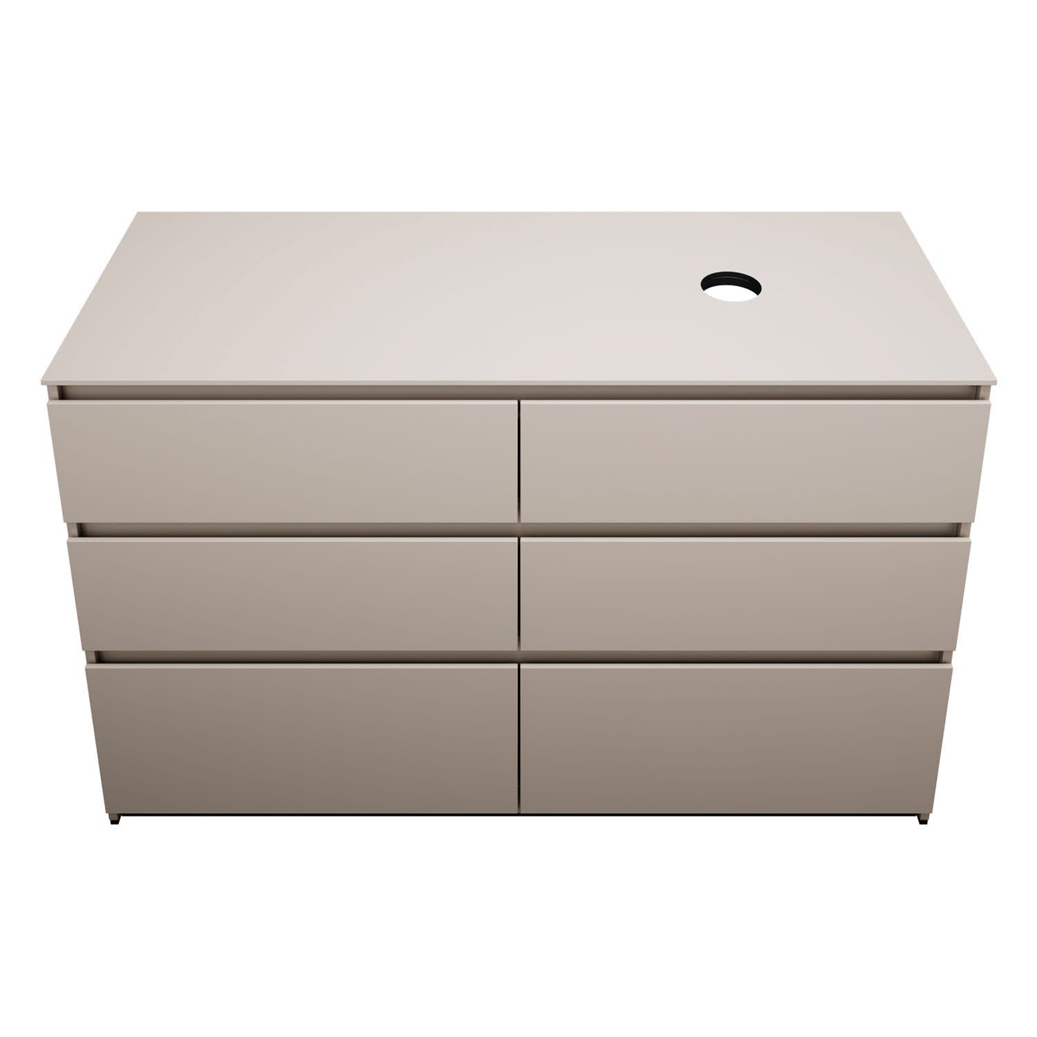 - Position Beckenausschnitt in der Tiefe: mittig bei Becken ohne Wandbefestigung oder wandbündig bei Becken mit Wandbefestigung (Bitte bei Bestellung den gewünschten Waschtisch mit angebeben.)