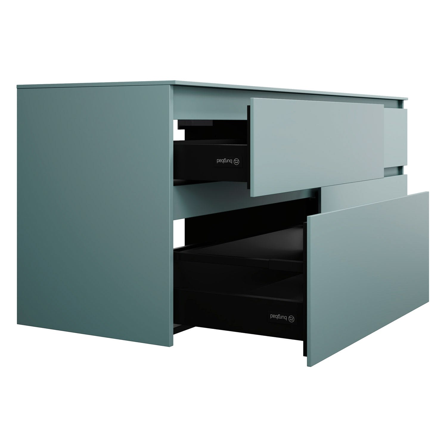 burgbad Lin20 Waschtischunterschrank mit Konsolenplatte 160 cm, 4 Auszüge, Beckenausschnitt rechts