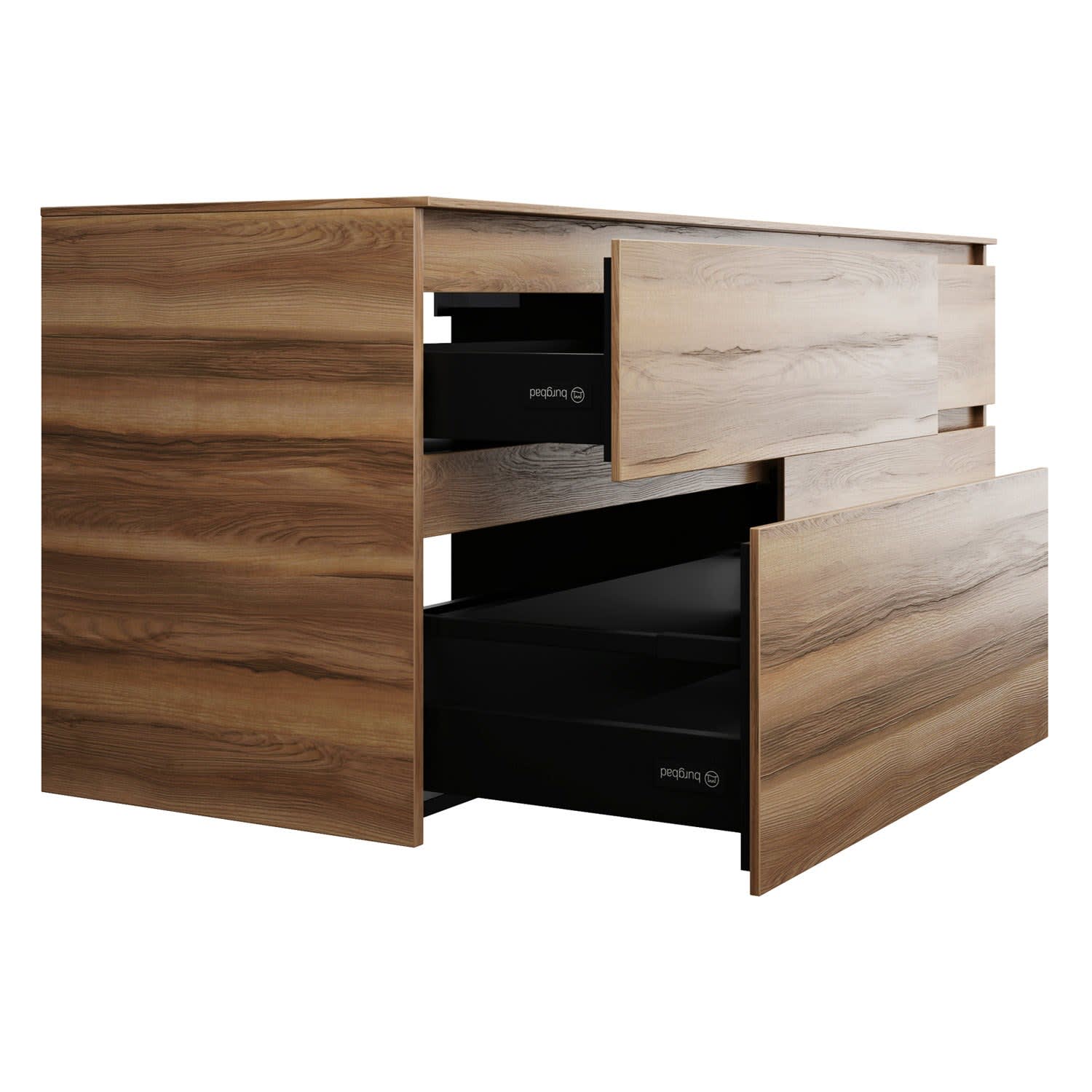 burgbad Lin20 Waschtischunterschrank mit Konsolenplatte 160 cm, 4 Auszüge, Beckenausschnitt rechts
