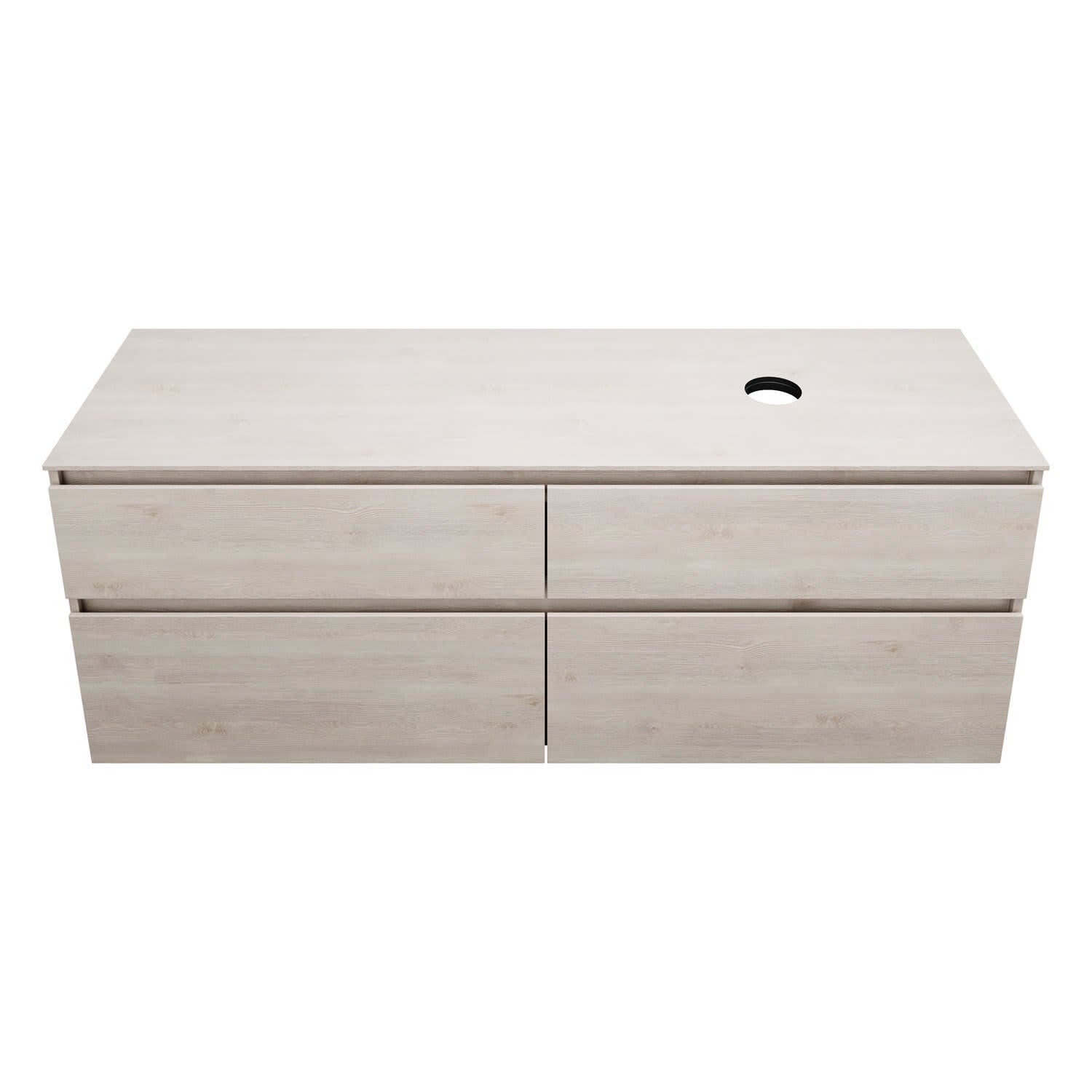 burgbad Lin20 Waschtischunterschrank mit Konsolenplatte 160 cm, 4 Auszüge, Beckenausschnitt rechts