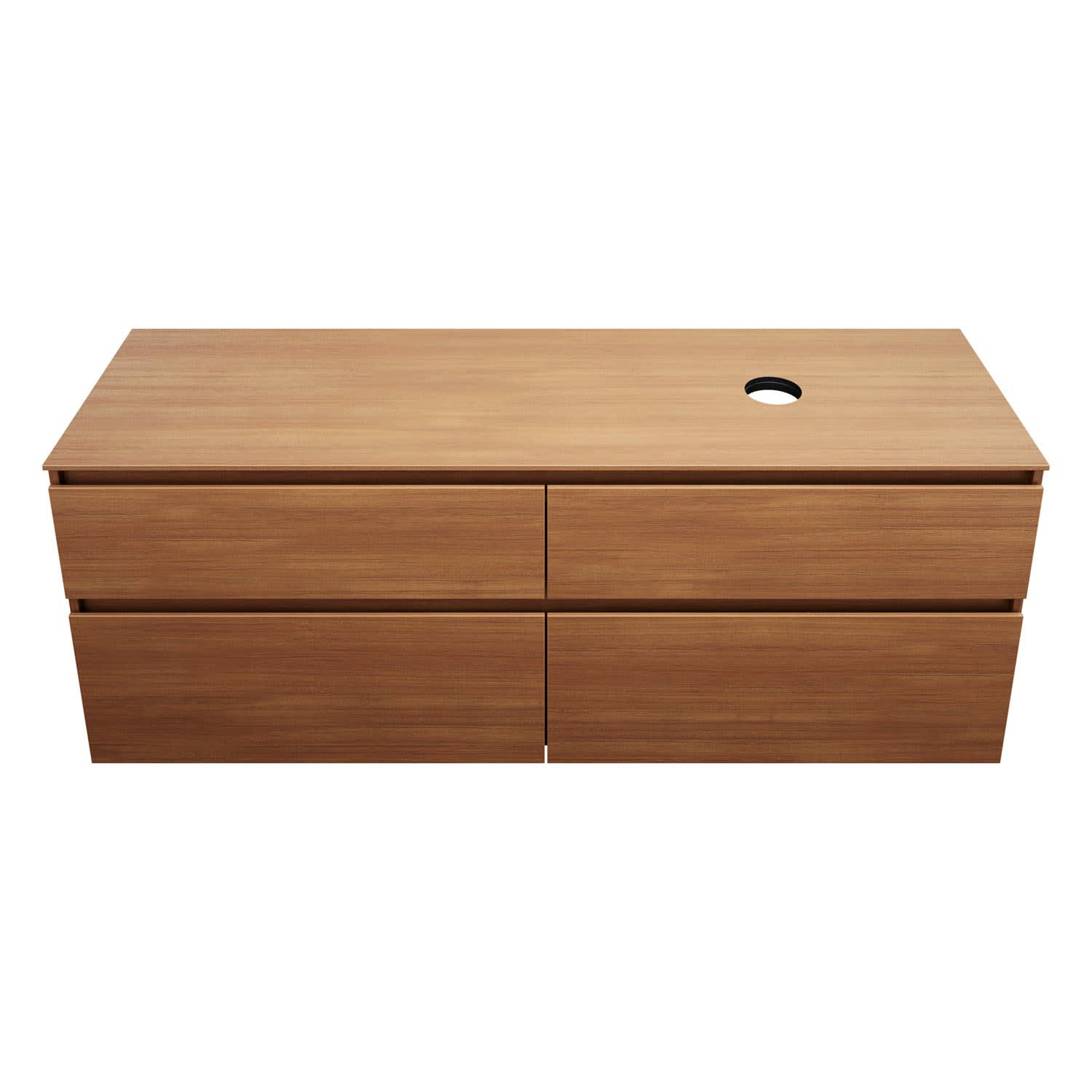 burgbad Lin20 Waschtischunterschrank mit Konsolenplatte 160 cm, 4 Auszüge, Beckenausschnitt rechts
