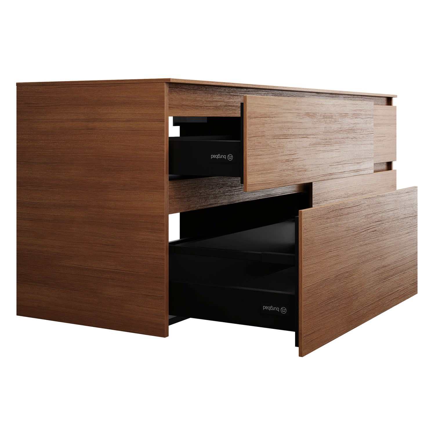 - 2 Auszüge oben H: 22 T: 35 cm, 1x mit Siphonausschnitt und Inneneinteilung