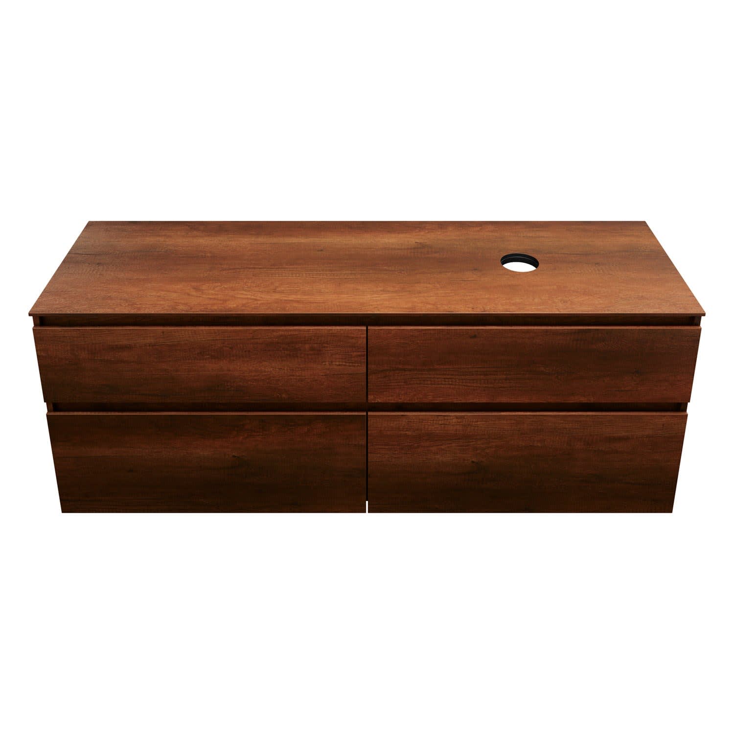 burgbad Lin20 Waschtischunterschrank mit Konsolenplatte 160 cm, 4 Auszüge, Beckenausschnitt rechts