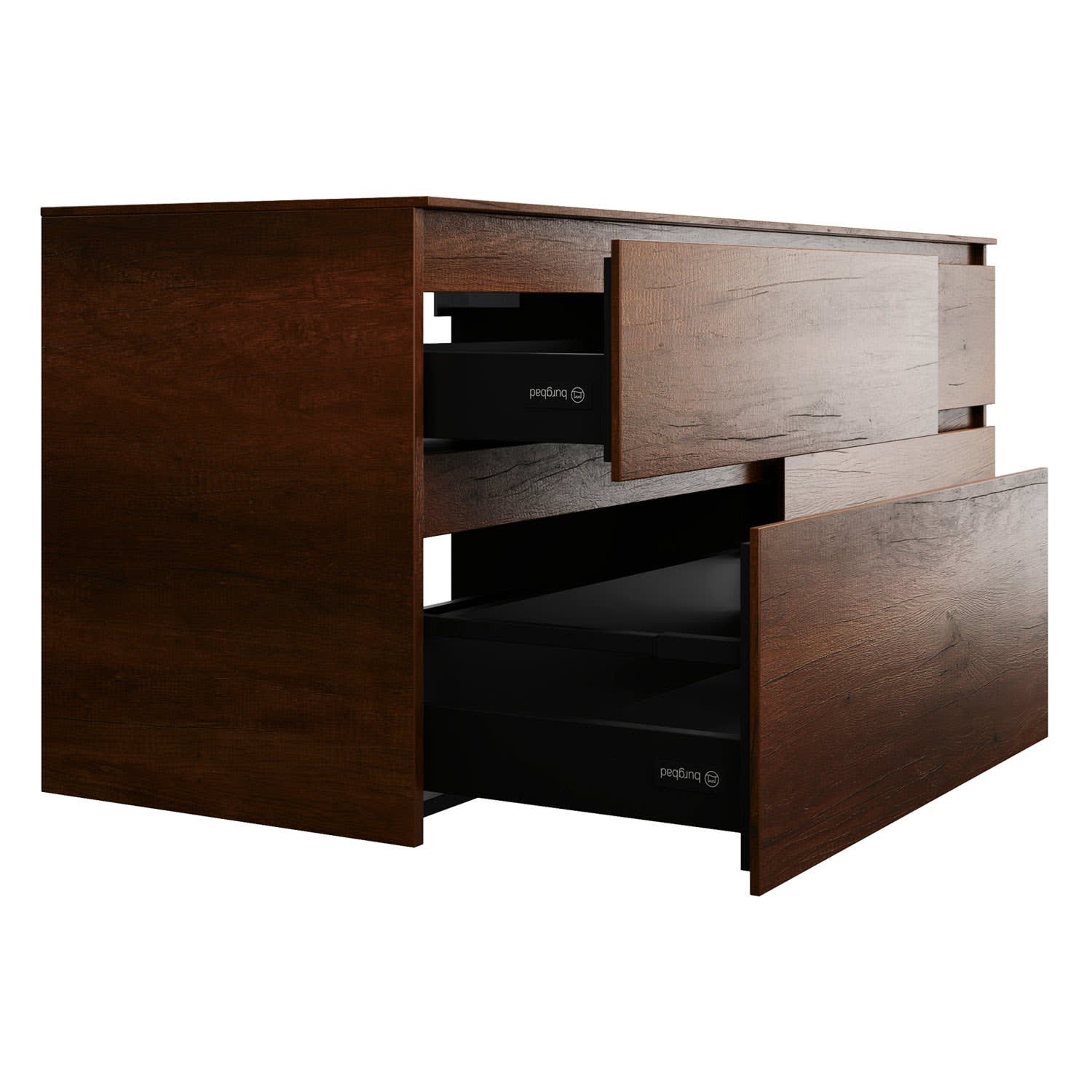 - 2 Auszüge oben H: 22 T: 35 cm, 1x mit Siphonausschnitt und Inneneinteilung
