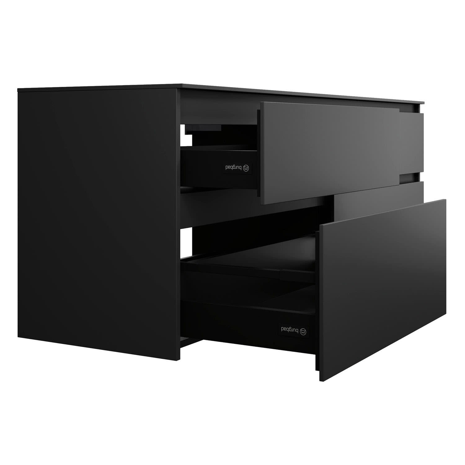 burgbad Lin20 Waschtischunterschrank mit Konsolenplatte 160 cm, 4 Auszüge, Beckenausschnitt rechts