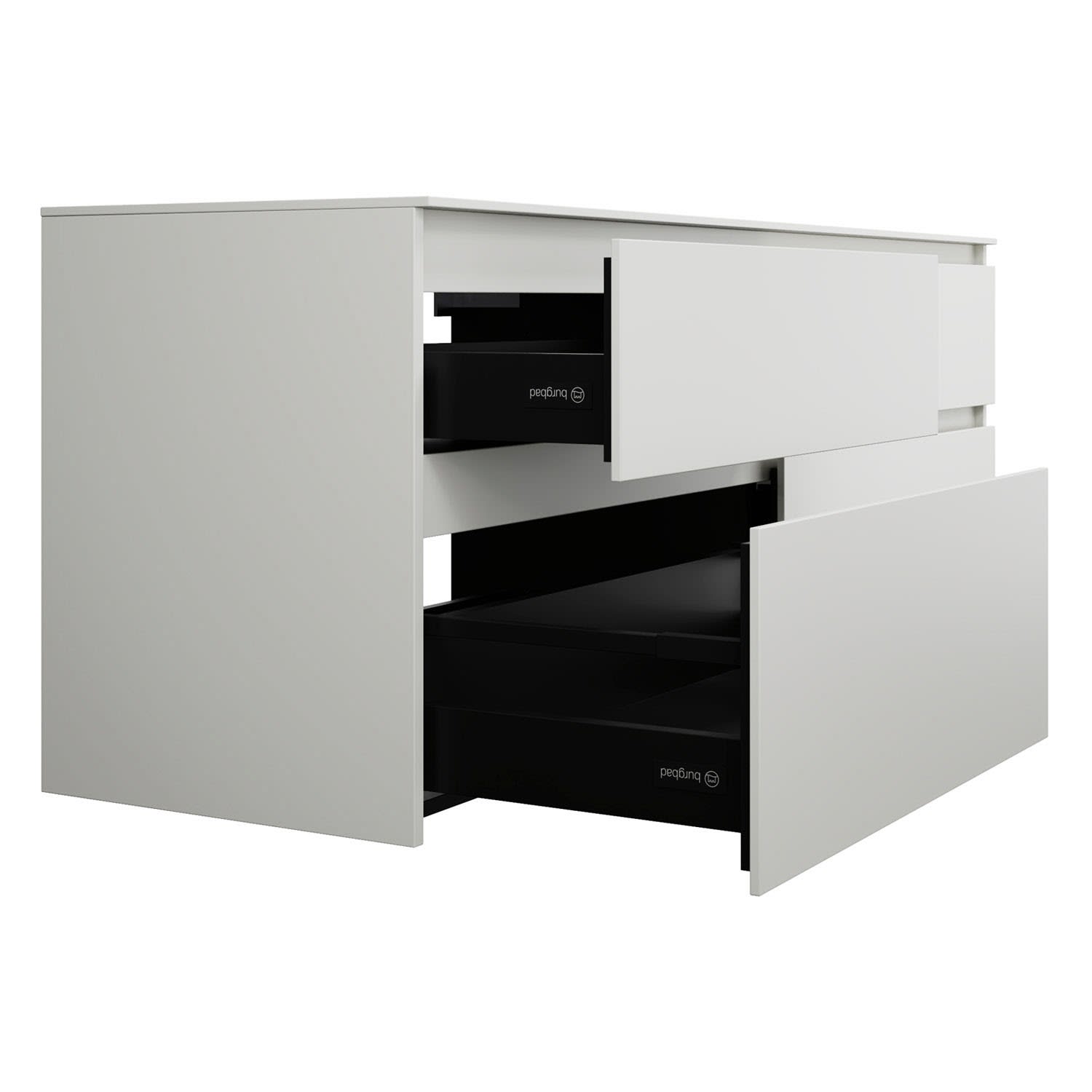 burgbad Lin20 Waschtischunterschrank mit Konsolenplatte 160 cm, 4 Auszüge, Beckenausschnitt rechts