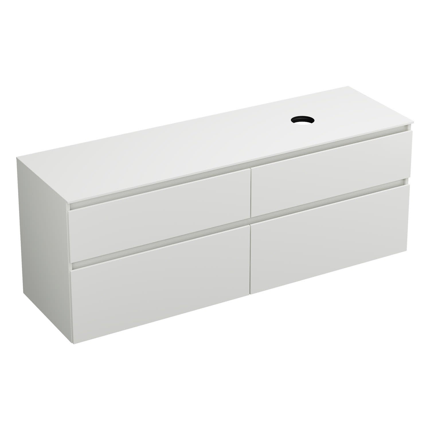 burgbad Lin20 Waschtischunterschrank mit Konsolenplatte 160 cm, 4 Auszüge, Beckenausschnitt rechts