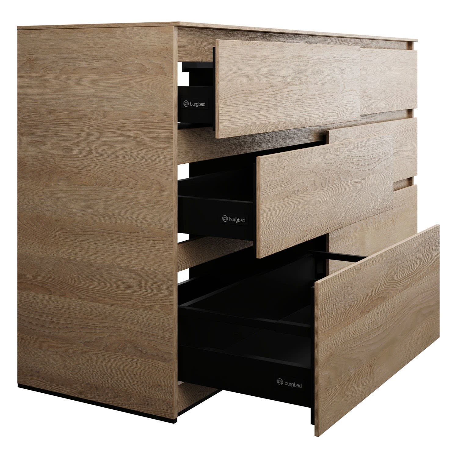- Vollauszug mit geräuscharmem Selbsteinzugsmechanismus inklusive Anschlagdämpfung (Silent System)