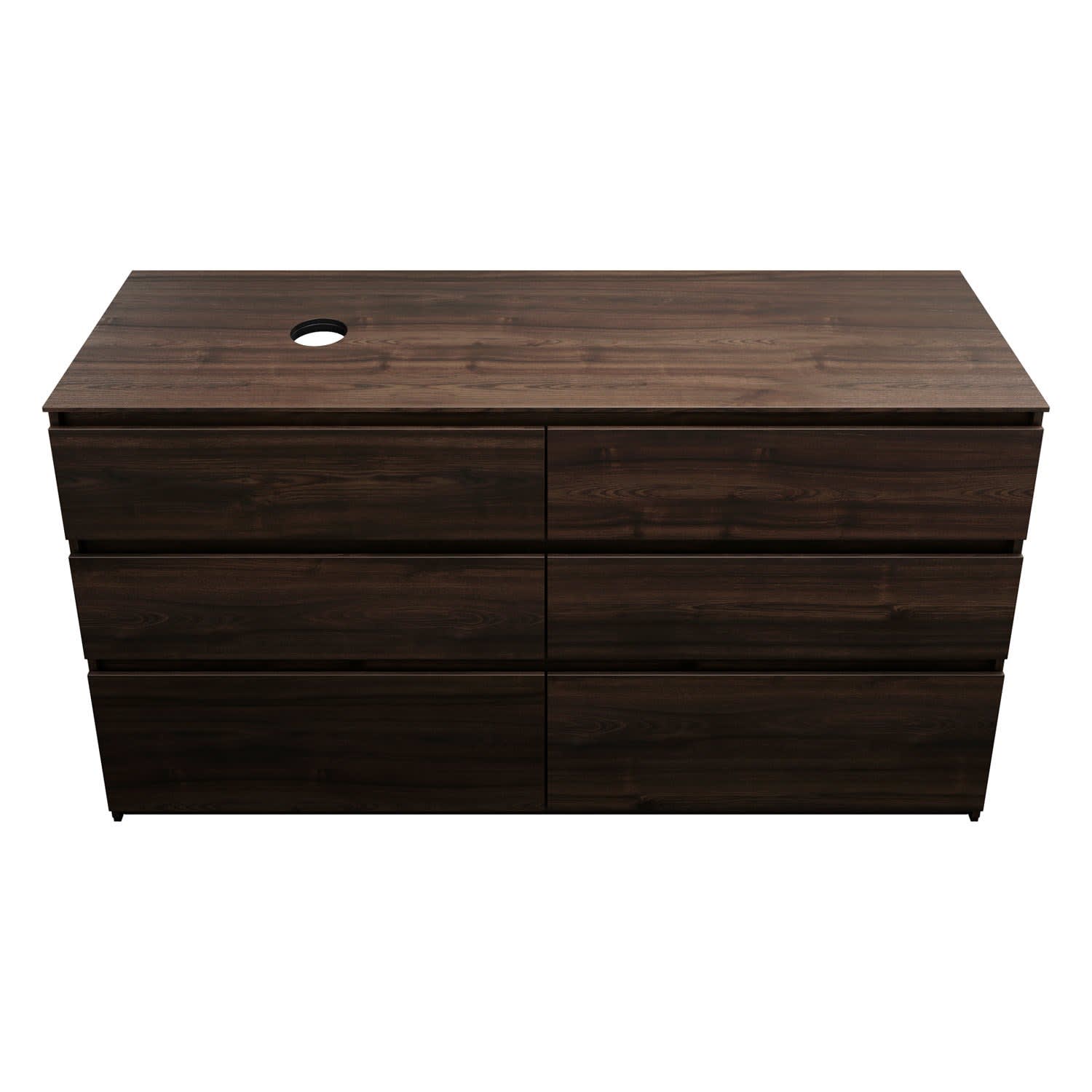 burgbad Lin20 Waschtischunterschrank mit Konsolenplatte 160 cm, 6 Auszüge, Beckenausschnitt links