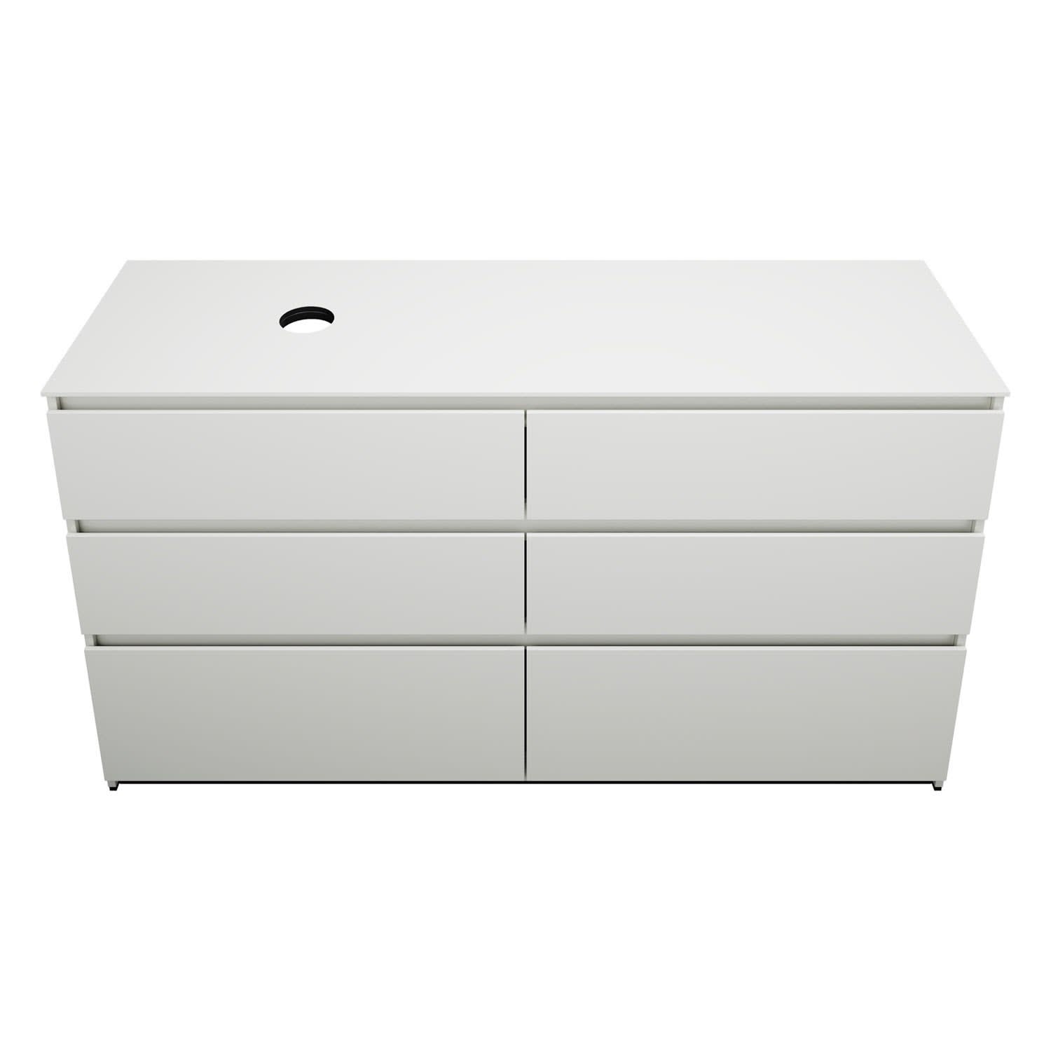 burgbad Lin20 Waschtischunterschrank mit Konsolenplatte 160 cm, 6 Auszüge, Beckenausschnitt links