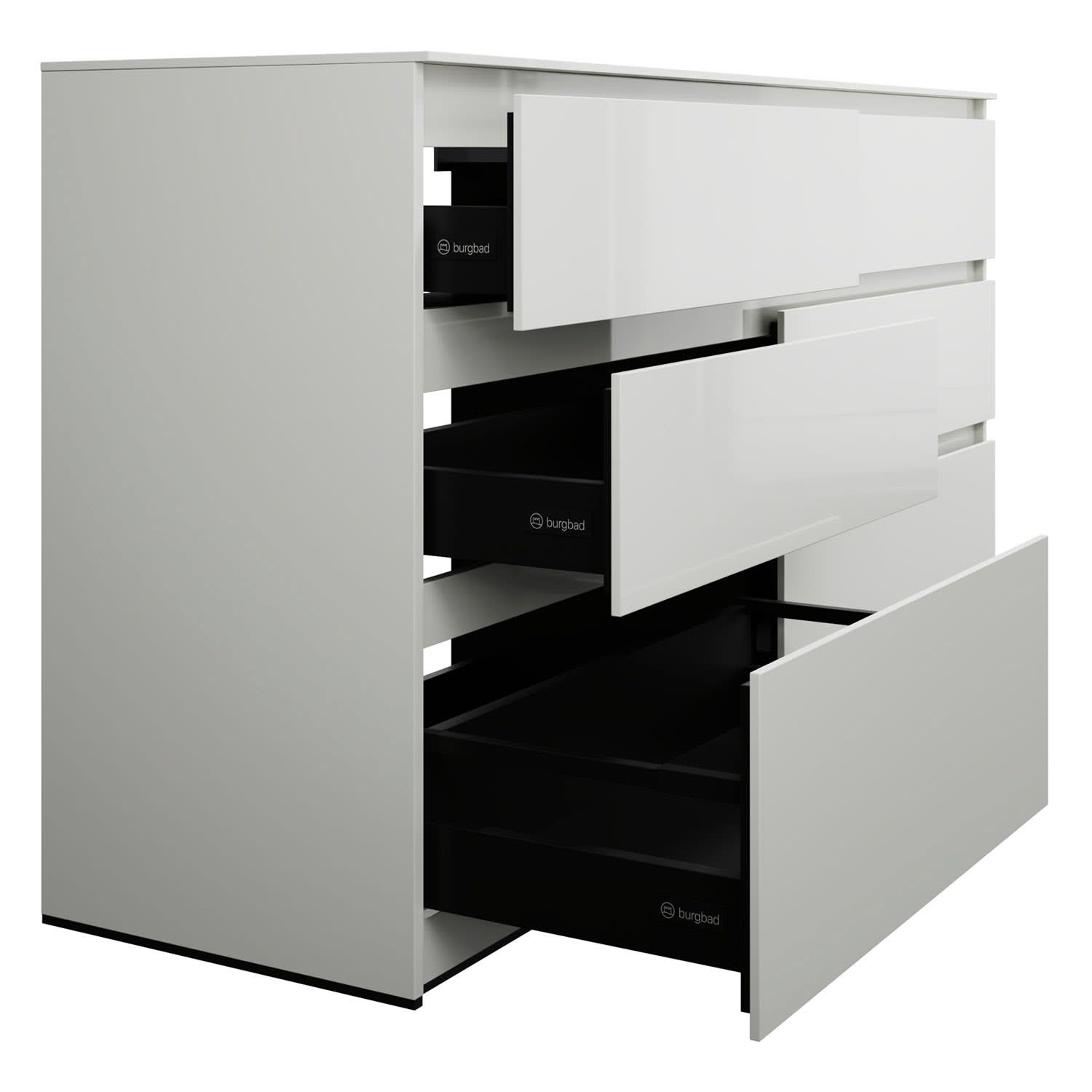 - Vollauszug mit geräuscharmem Selbsteinzugsmechanismus inklusive Anschlagdämpfung (Silent System)