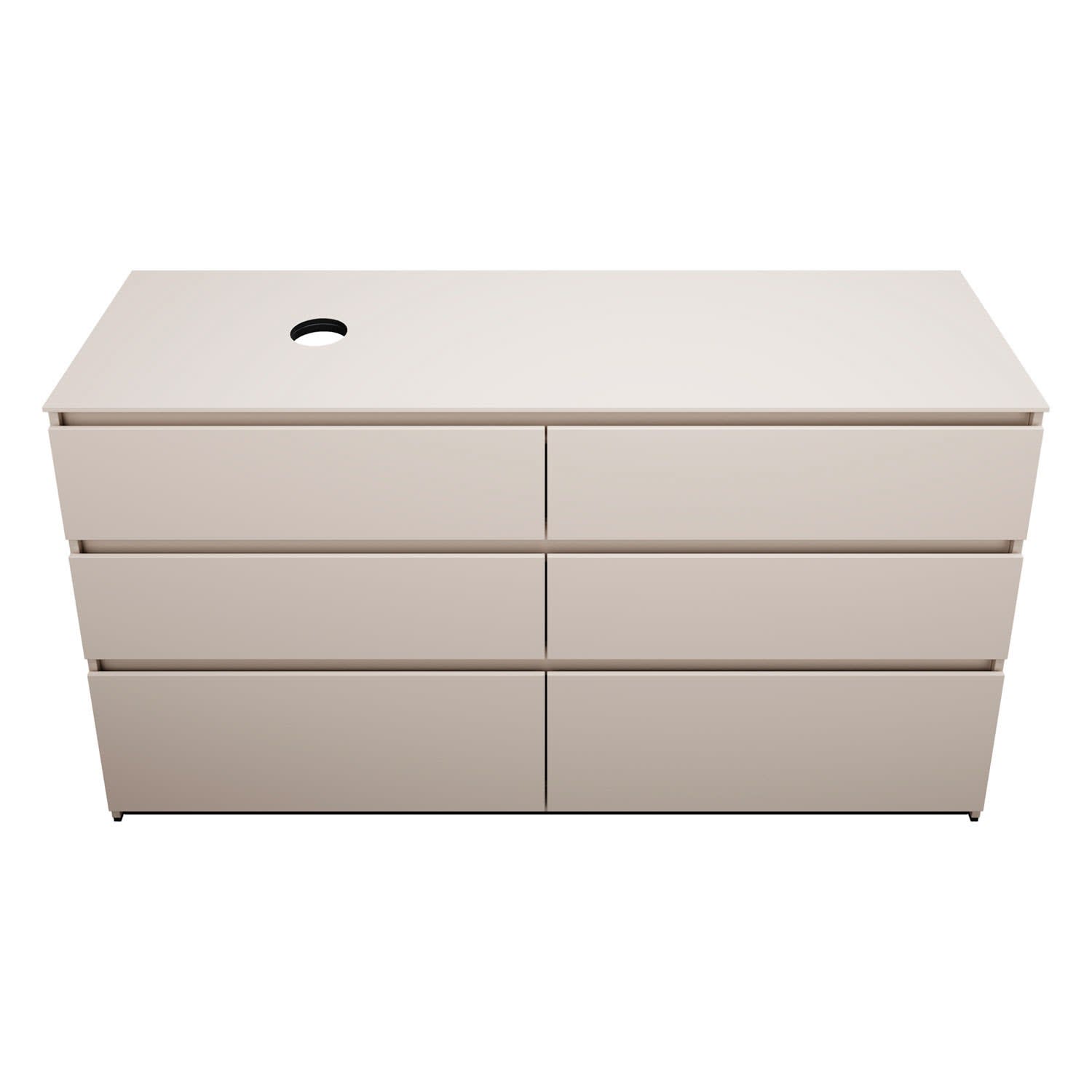 burgbad Lin20 Waschtischunterschrank mit Konsolenplatte 160 cm, 6 Auszüge, Beckenausschnitt links