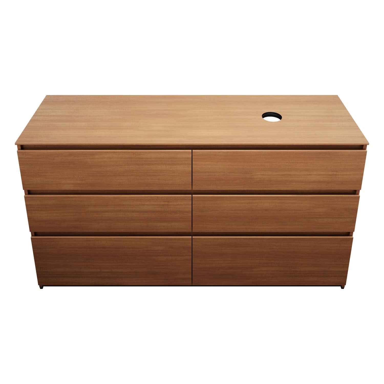 burgbad Lin20 Waschtischunterschrank mit Konsolenplatte 160 cm, 6 Auszüge, Beckenausschnitt rechts