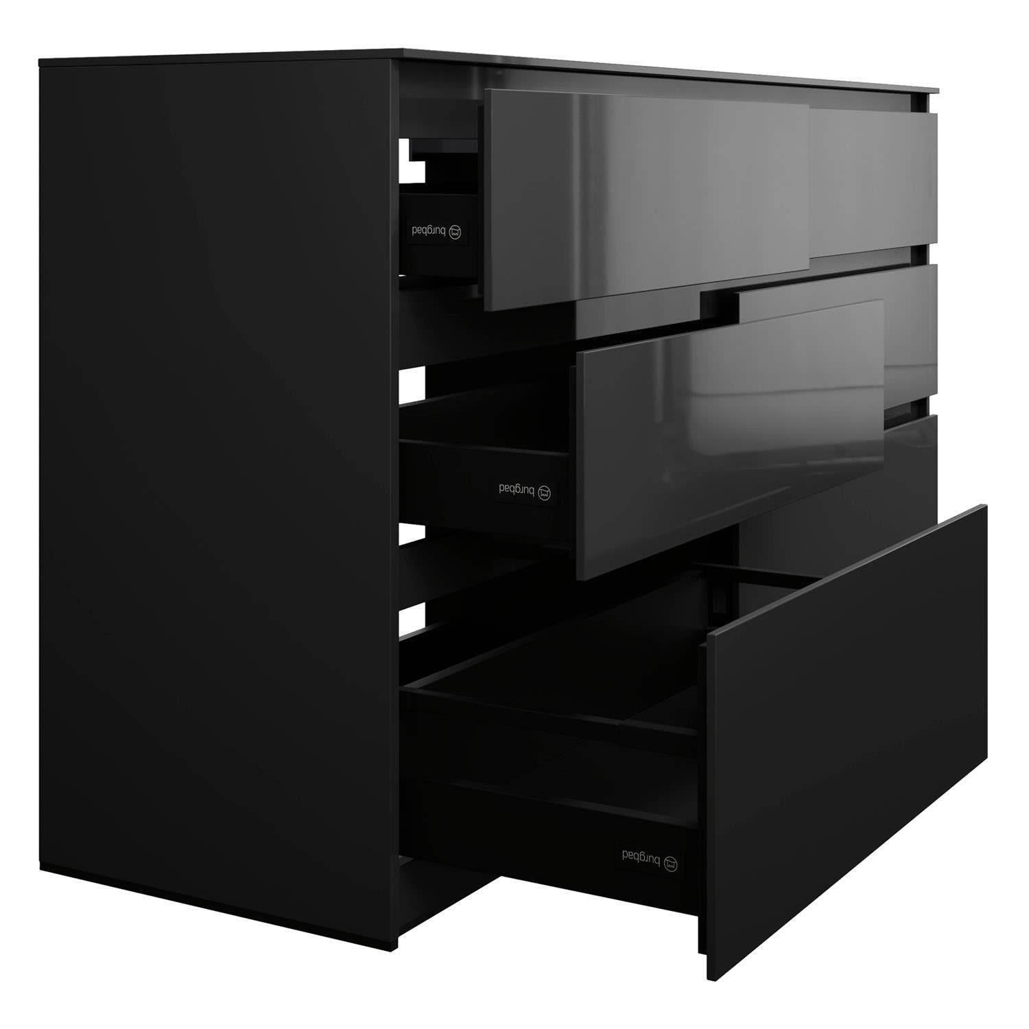 - Vollauszug mit geräuscharmem Selbsteinzugsmechanismus inklusive Anschlagdämpfung (Silent System)