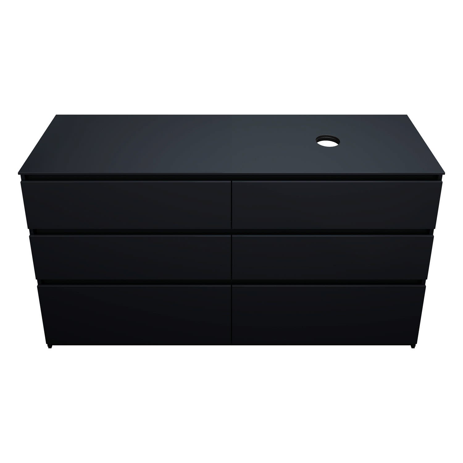 burgbad Lin20 Waschtischunterschrank mit Konsolenplatte 160 cm, 6 Auszüge, Beckenausschnitt rechts