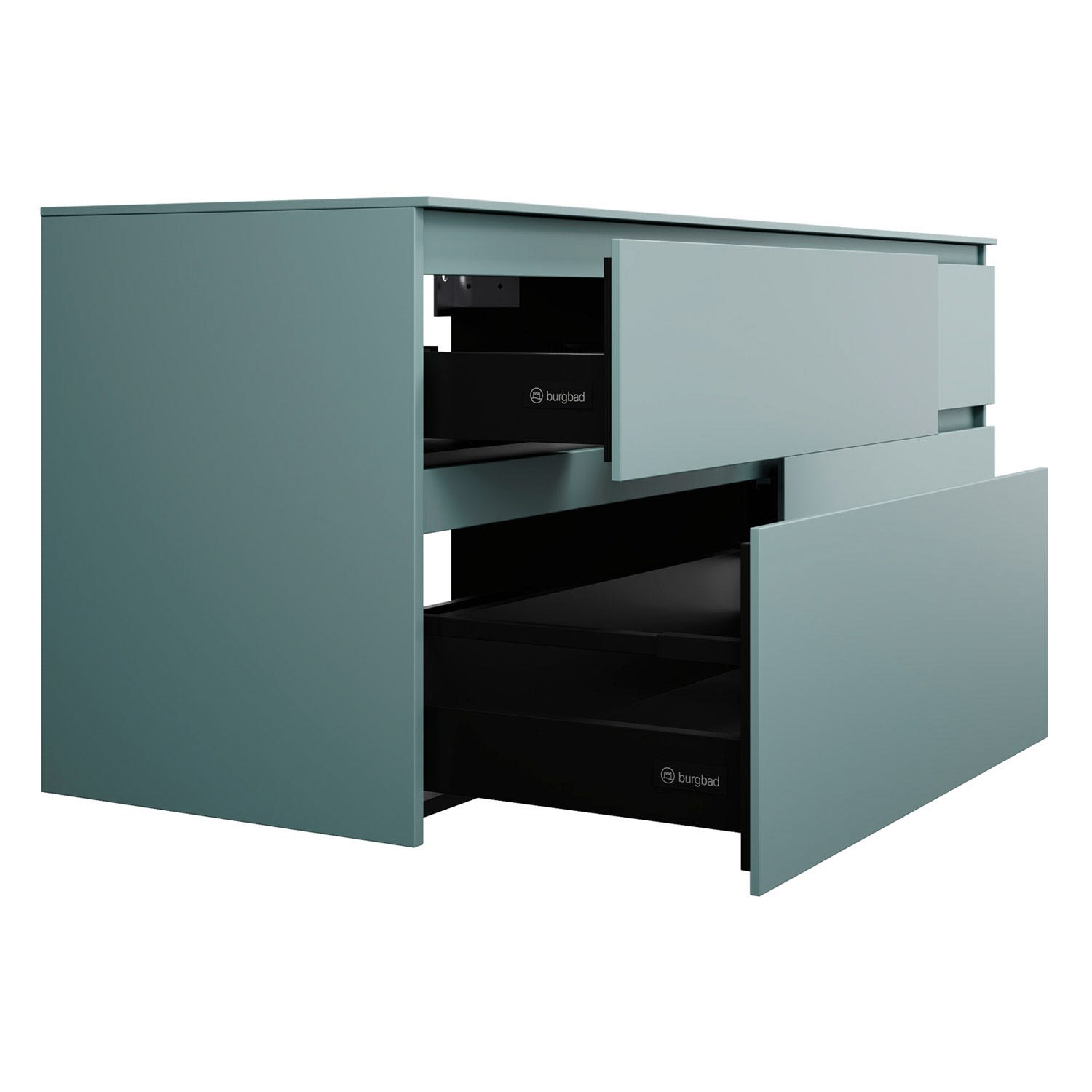 burgbad Lin20 Waschtischunterschrank mit Konsolenplatte 160 cm, 4 Auszüge, Beckenausschnitt links und rechts
