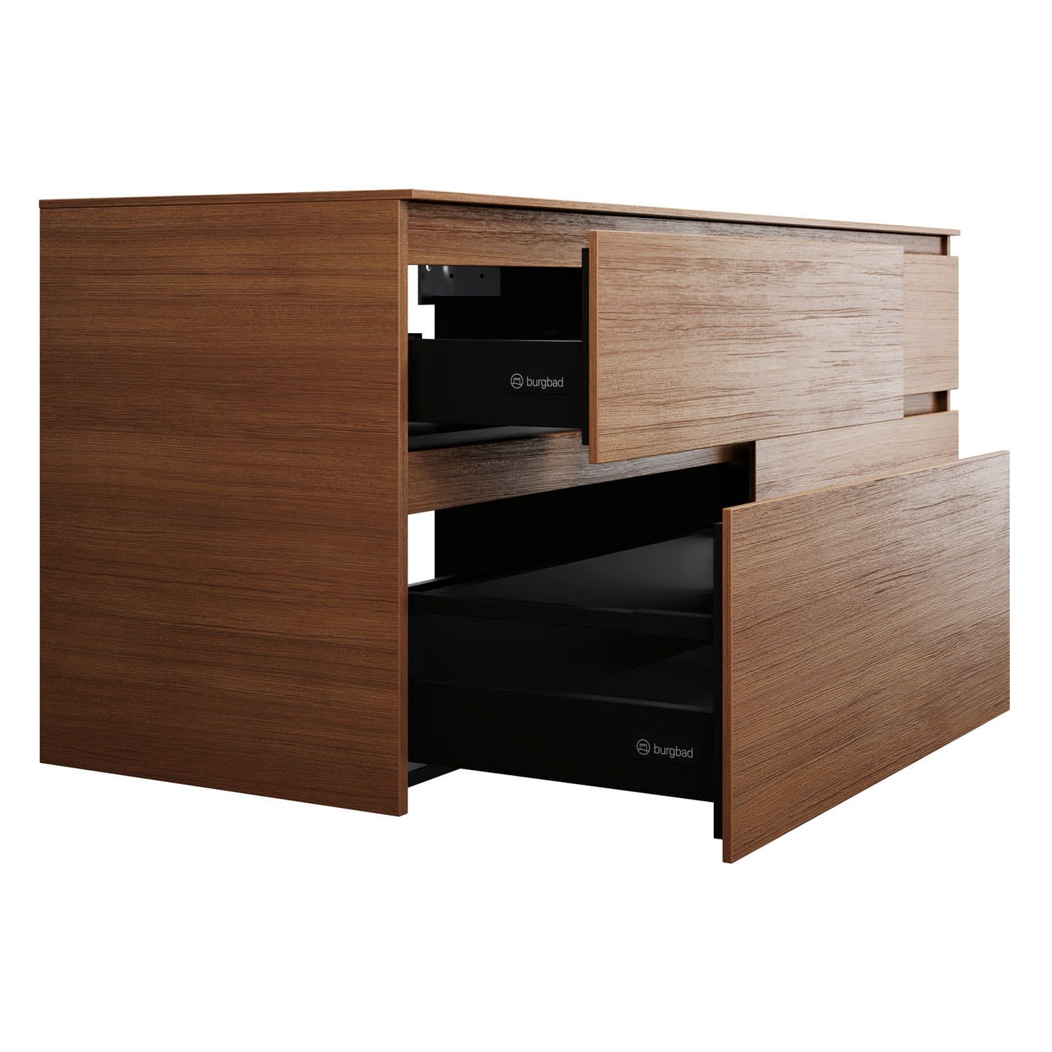 burgbad Lin20 Waschtischunterschrank mit Konsolenplatte 160 cm, 4 Auszüge, Beckenausschnitt links und rechts