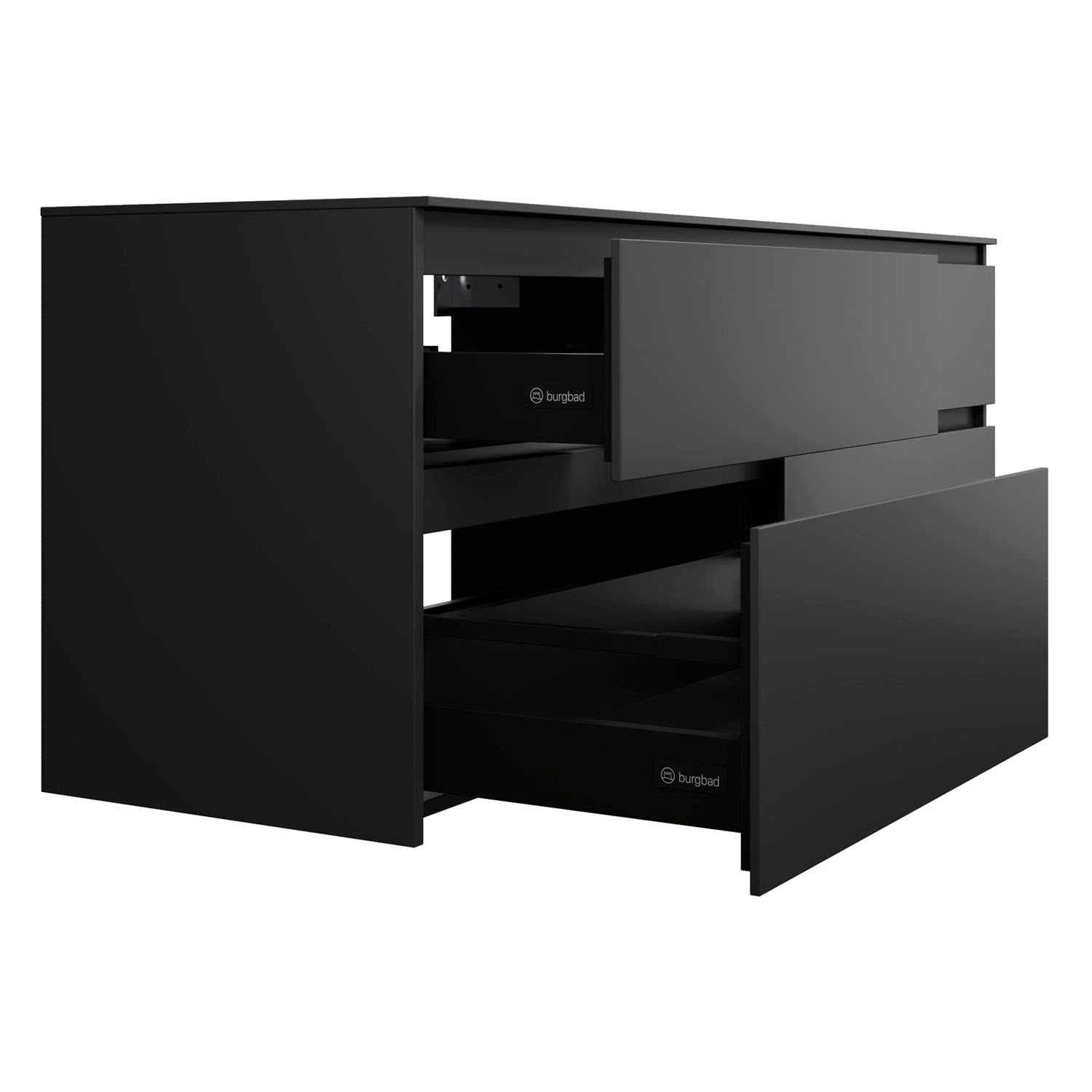 burgbad Lin20 Waschtischunterschrank mit Konsolenplatte 160 cm, 4 Auszüge, Beckenausschnitt links und rechts