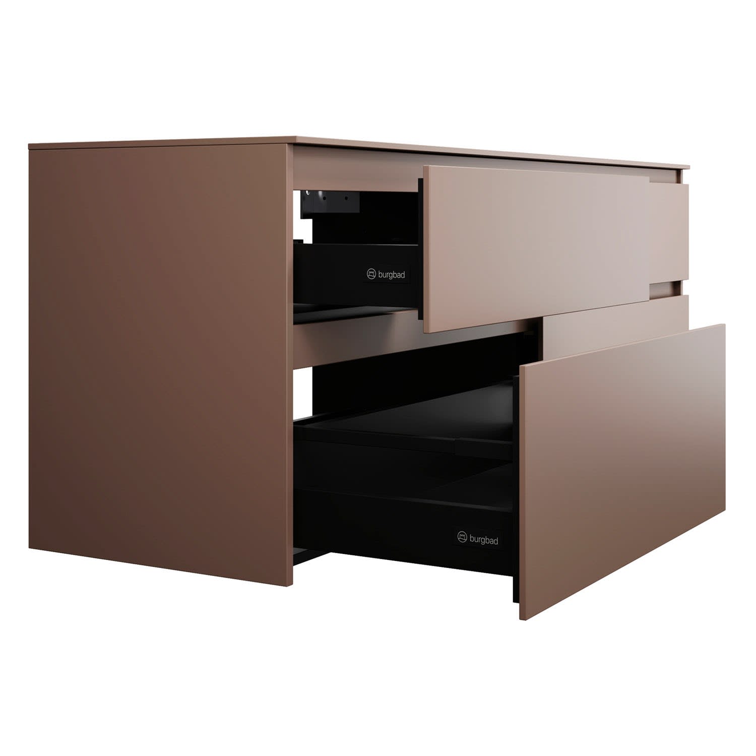 burgbad Lin20 Waschtischunterschrank mit Konsolenplatte 160 cm, 4 Auszüge, Beckenausschnitt links und rechts