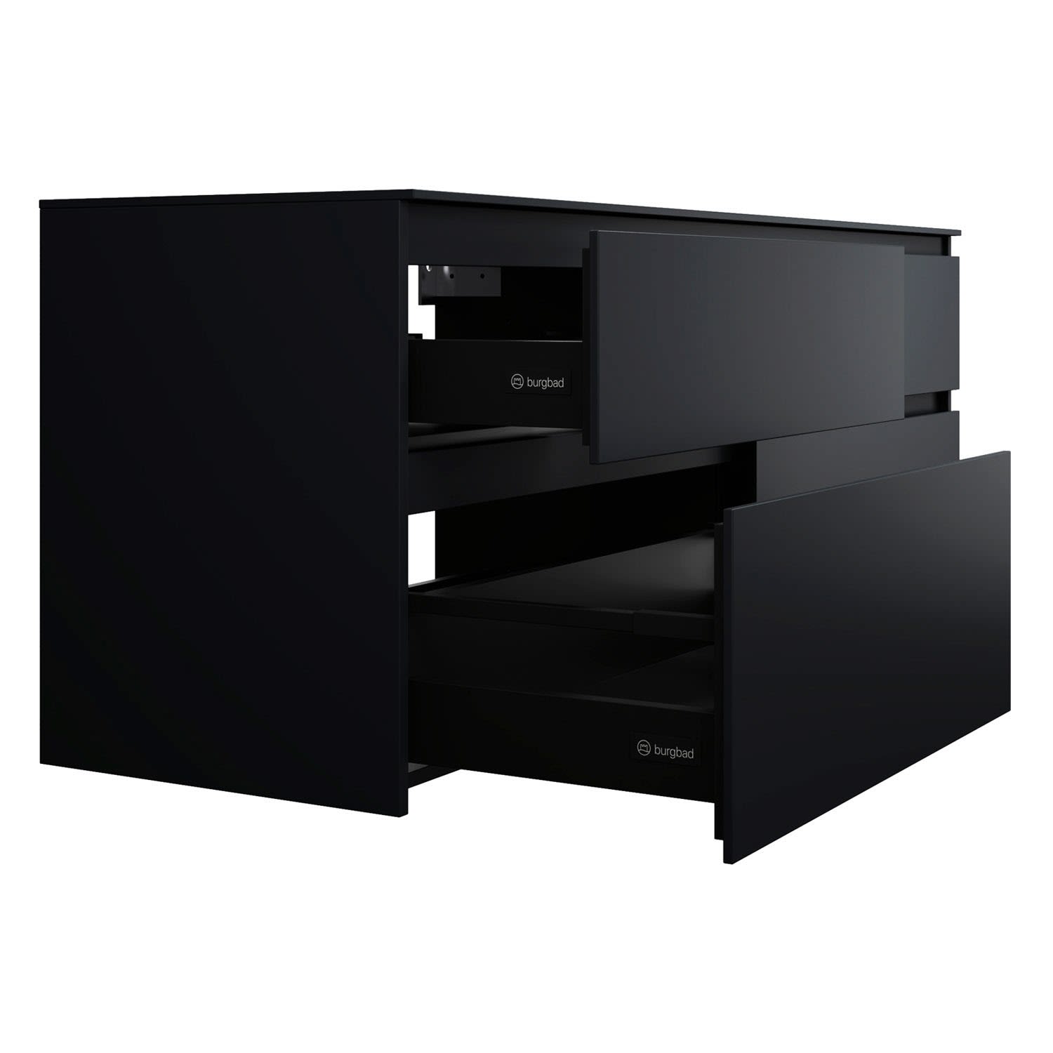 burgbad Lin20 Waschtischunterschrank mit Konsolenplatte 160 cm, 4 Auszüge, Beckenausschnitt links und rechts