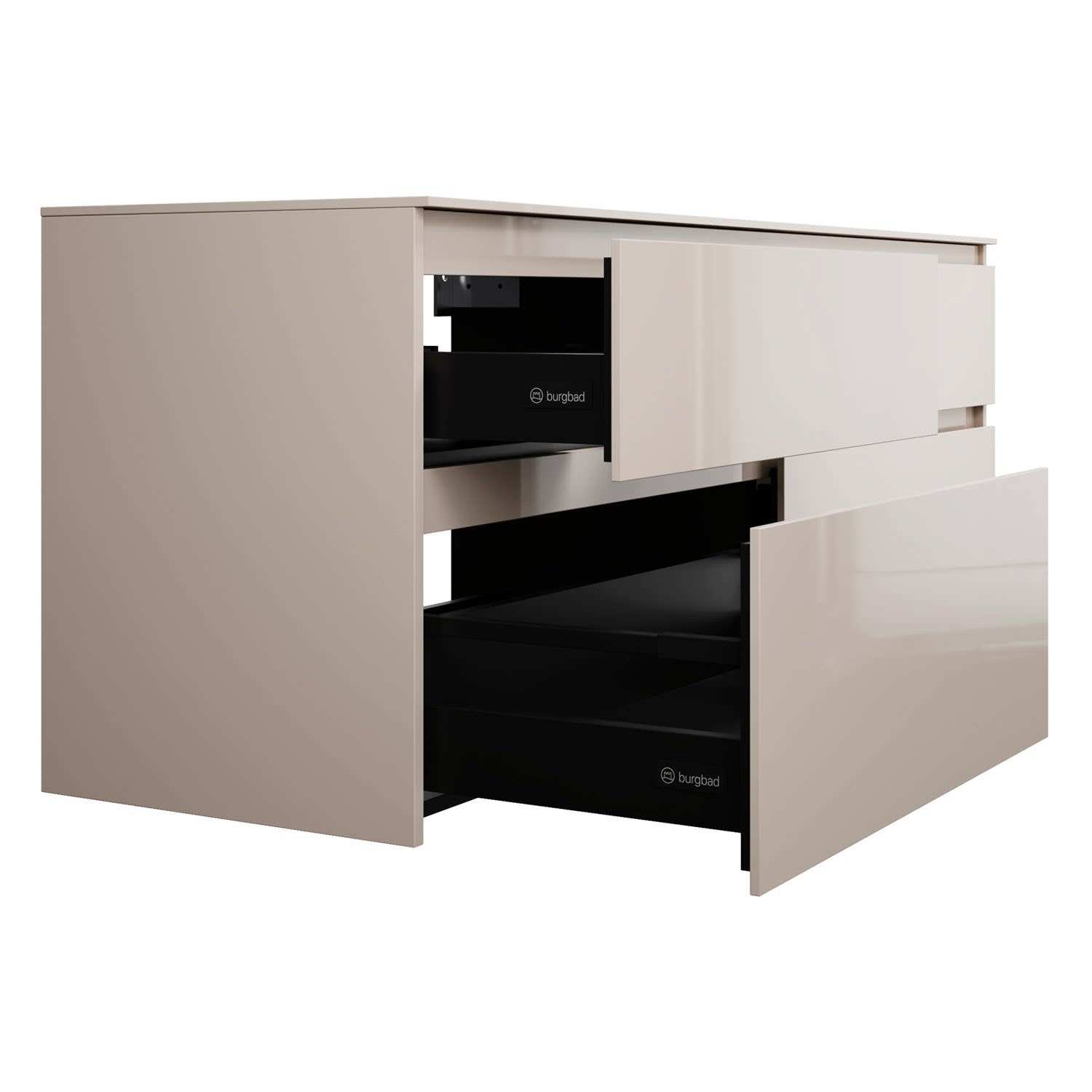 burgbad Lin20 Waschtischunterschrank mit Konsolenplatte 160 cm, 4 Auszüge, Beckenausschnitt links und rechts
