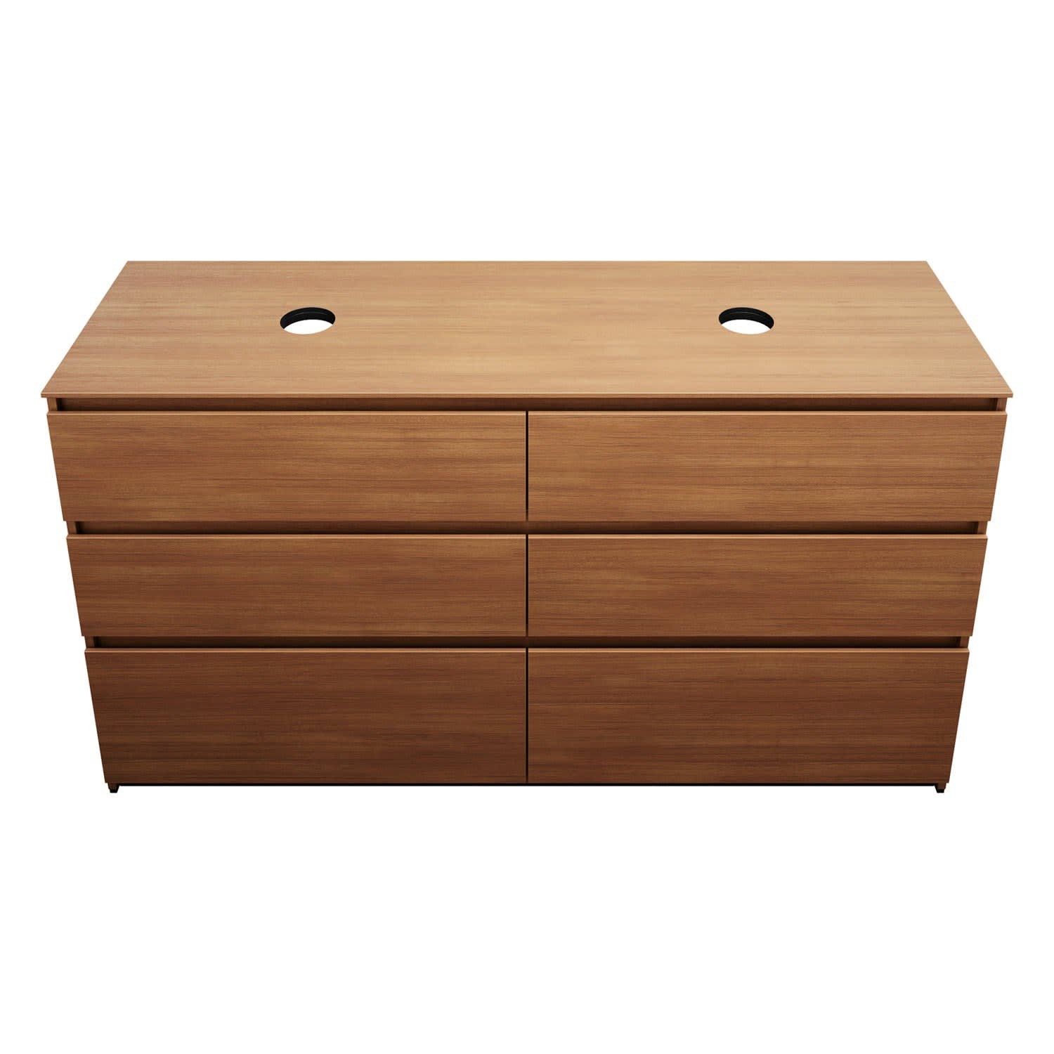 burgbad Lin20 Waschtischunterschrank mit Konsolenplatte 160 cm, 6 Auszüge, Beckenausschnitt links und rechts