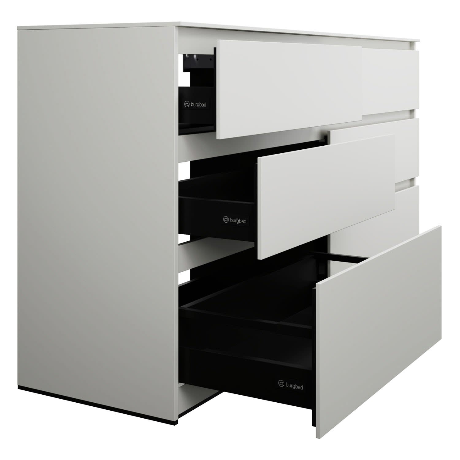 - Vollauszug mit geräuscharmem Selbsteinzugsmechanismus inklusive Anschlagdämpfung (Silent System)