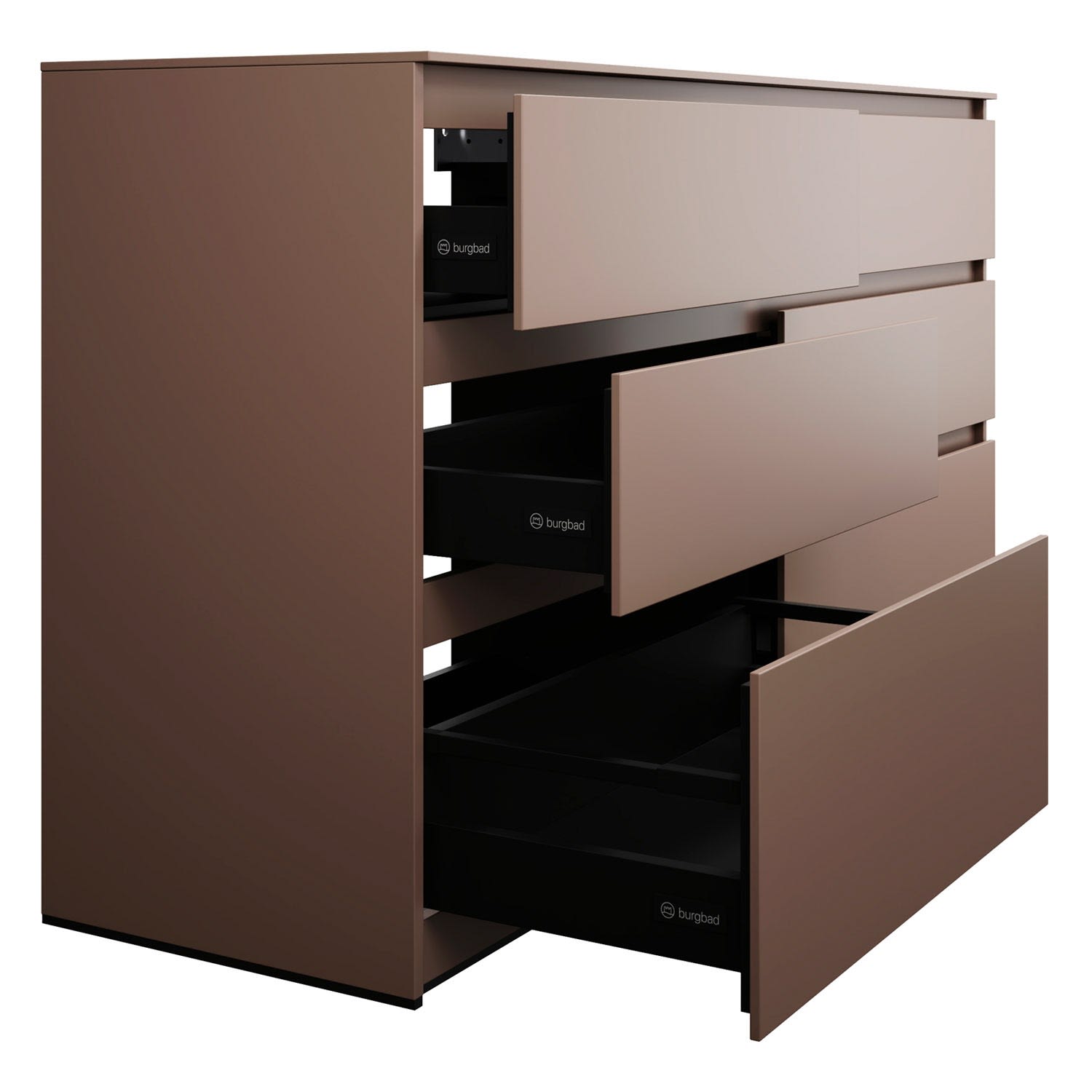- Vollauszug mit geräuscharmem Selbsteinzugsmechanismus inklusive Anschlagdämpfung (Silent System)