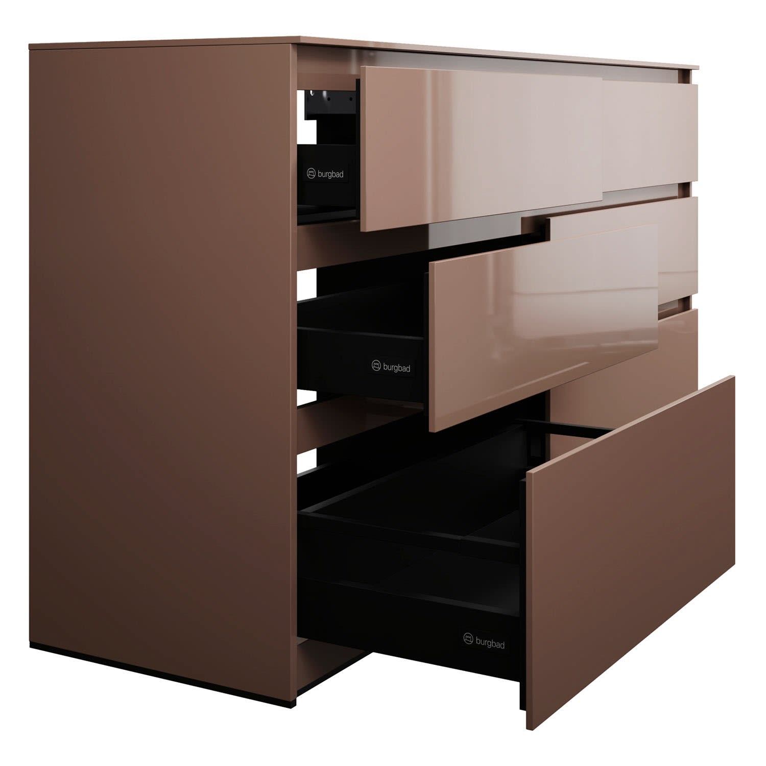 - Vollauszug mit geräuscharmem Selbsteinzugsmechanismus inklusive Anschlagdämpfung (Silent System)