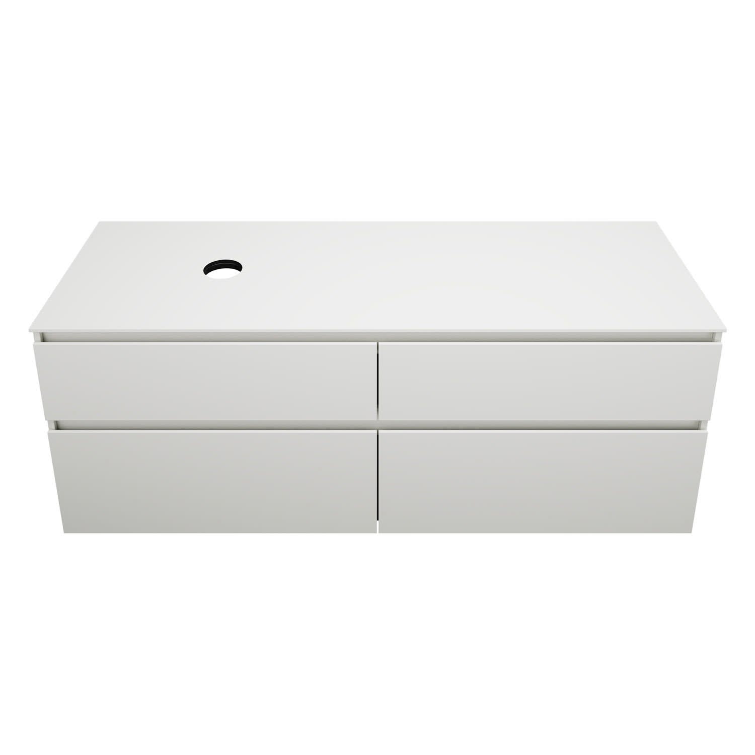 burgbad Lin20 Waschtischunterschrank mit Konsolenplatte 160 cm, 4 Auszüge, Beckenausschnitt links