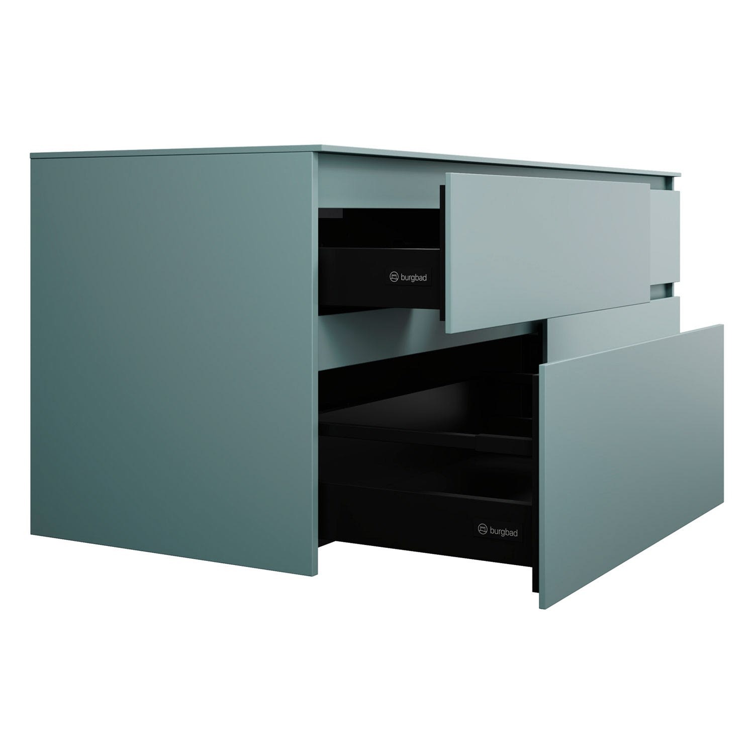 burgbad Lin20 Waschtischunterschrank mit Konsolenplatte 160 cm, 4 Auszüge, Beckenausschnitt links