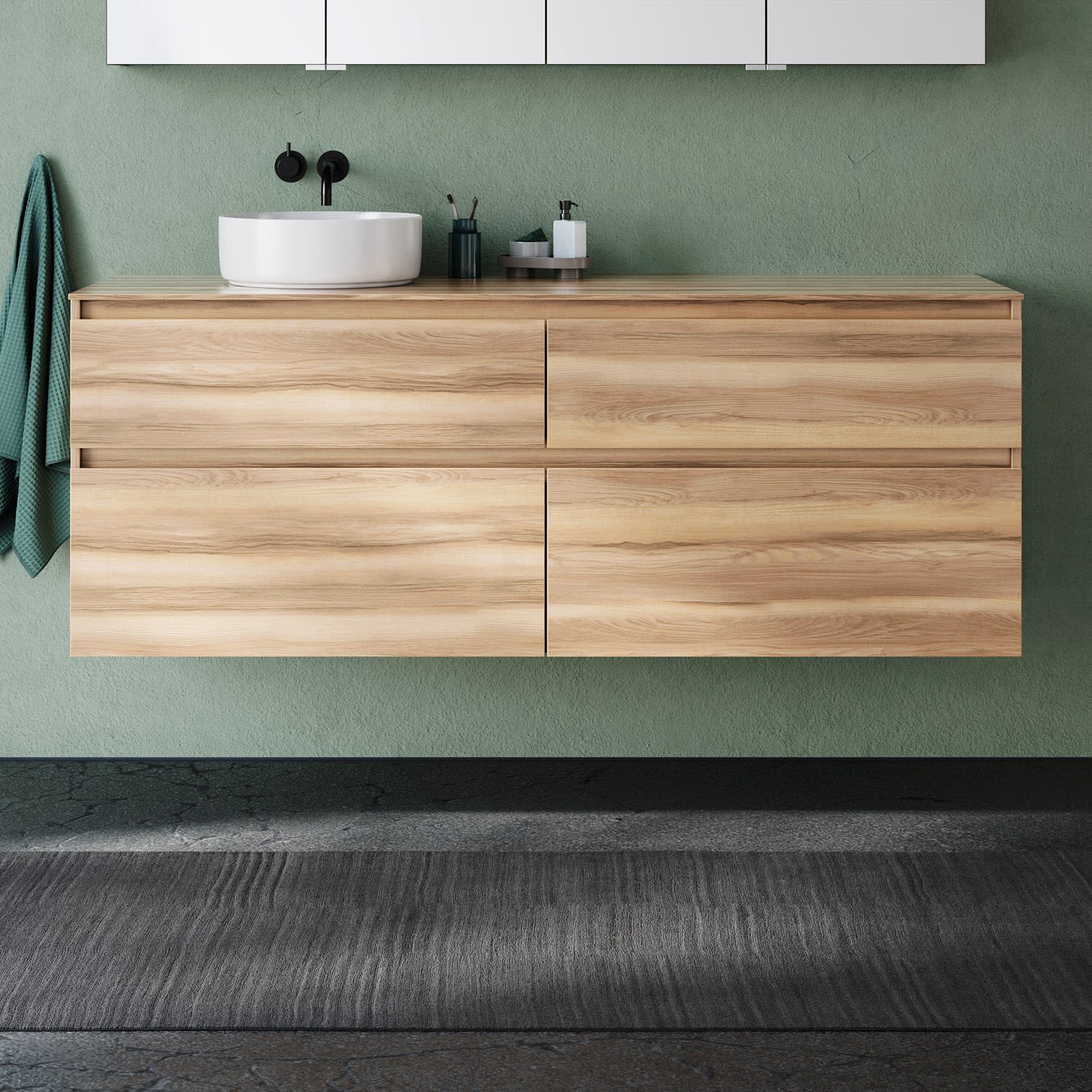 Die Waschtischplatte wird ohne Armaturbohrung geliefert. Armaturbohrungen müssen bauseits vorgenommen werden.