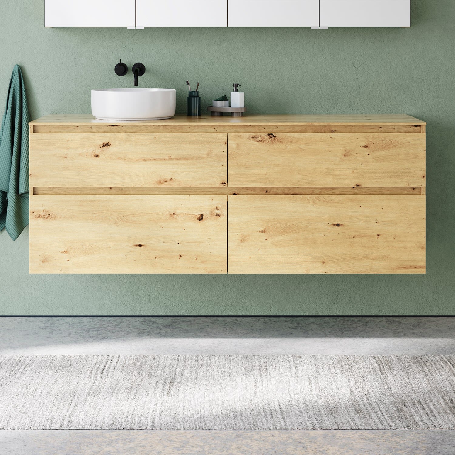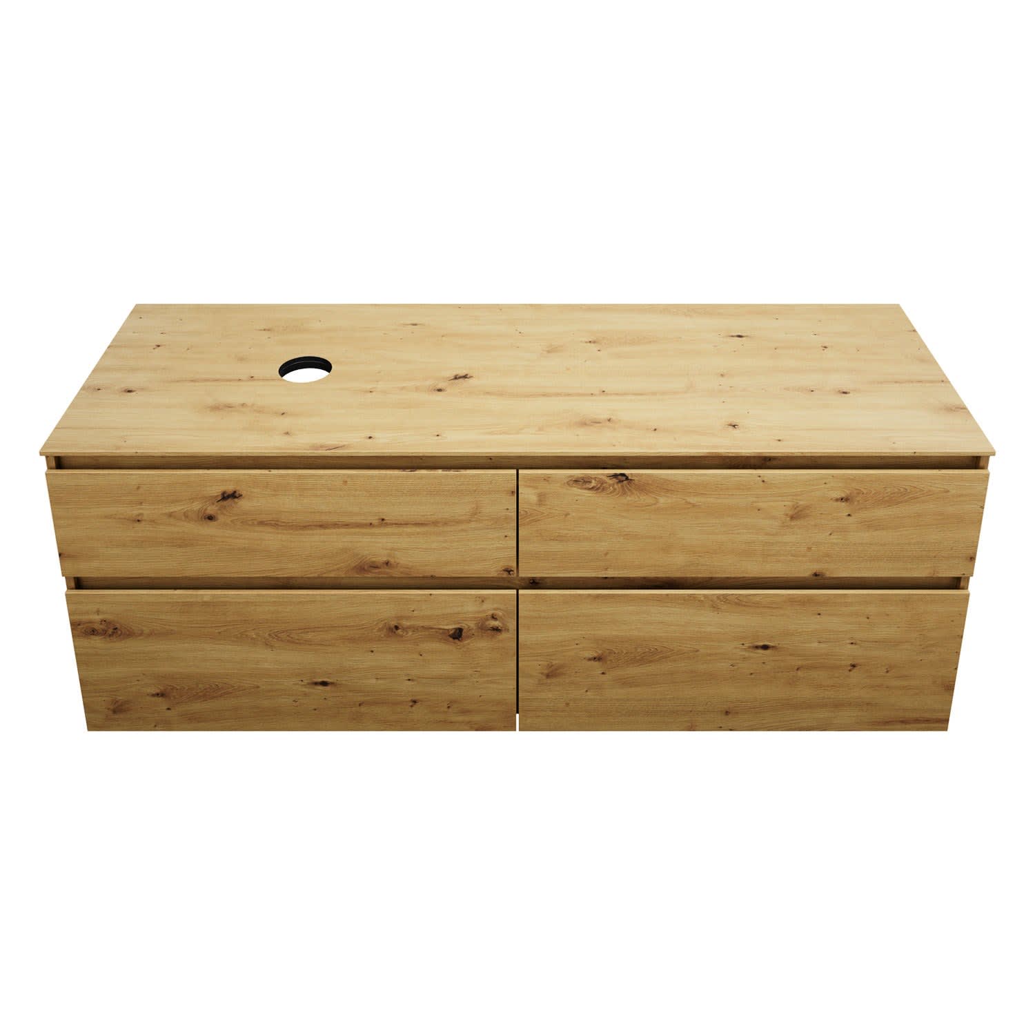 burgbad Lin20 Waschtischunterschrank mit Konsolenplatte 160 cm, 4 Auszüge, Beckenausschnitt links