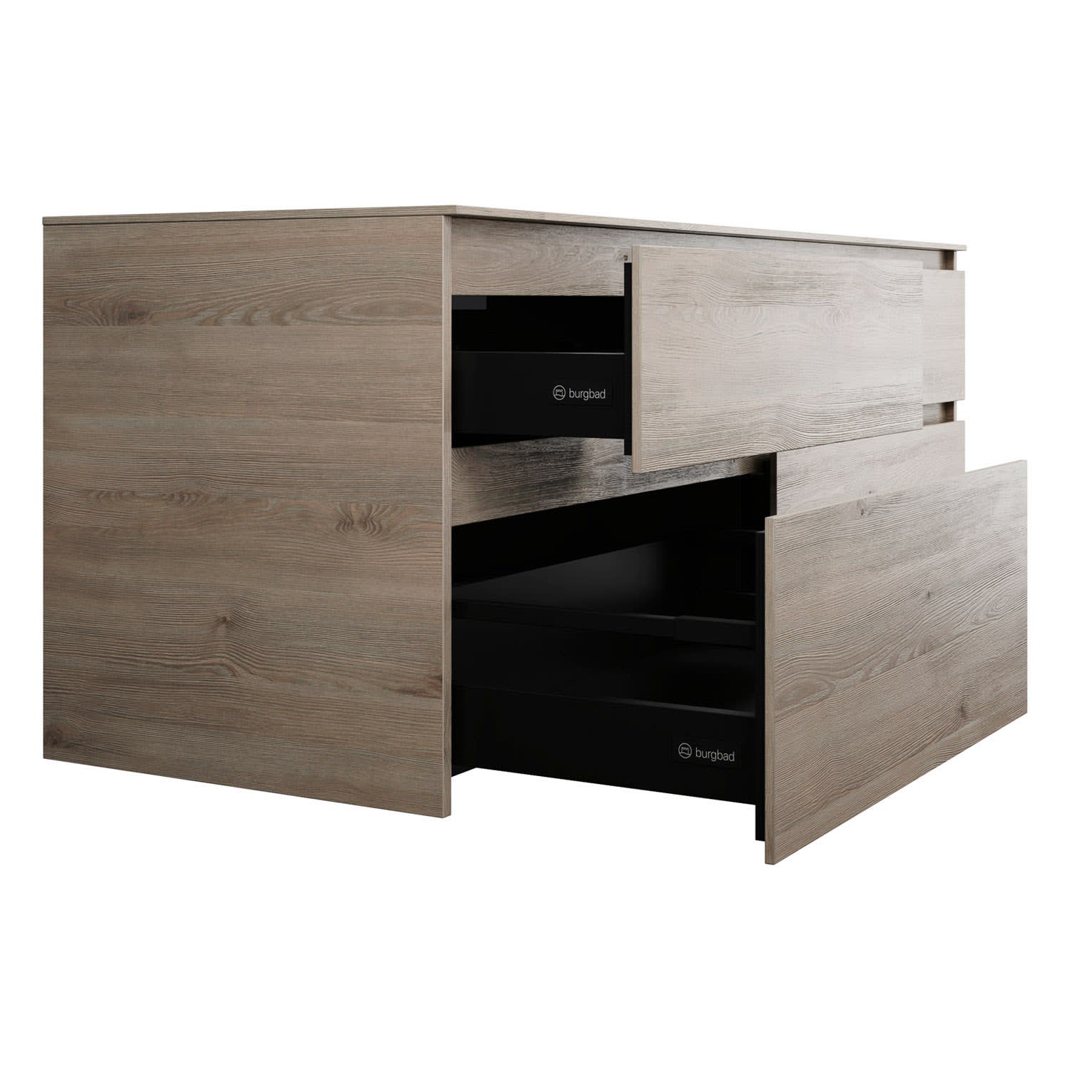 burgbad Lin20 Waschtischunterschrank mit Konsolenplatte 160 cm, 4 Auszüge, Beckenausschnitt links