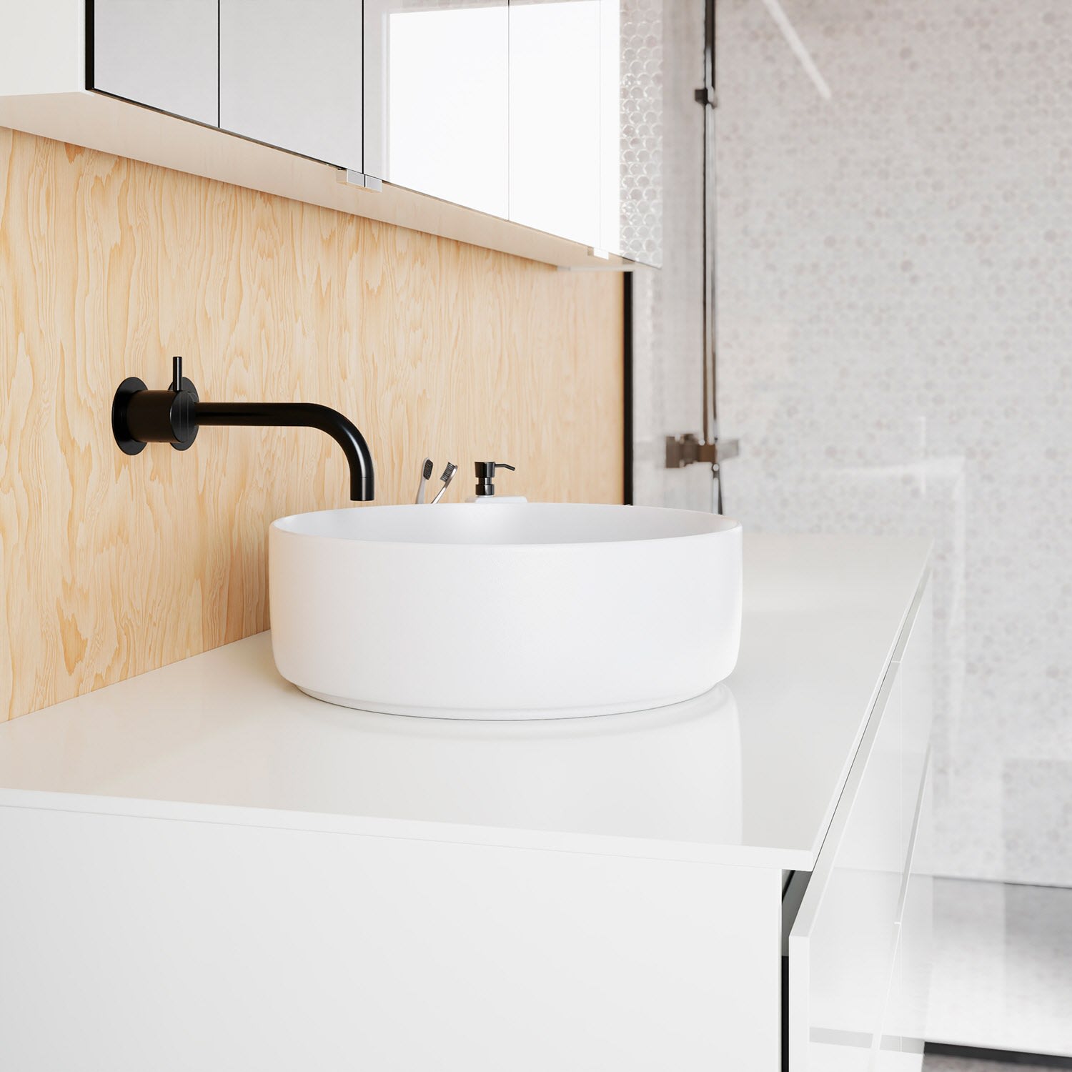 Die Waschtischplatte wird ohne Armaturbohrung geliefert. Armaturbohrungen müssen bauseits vorgenommen werden.