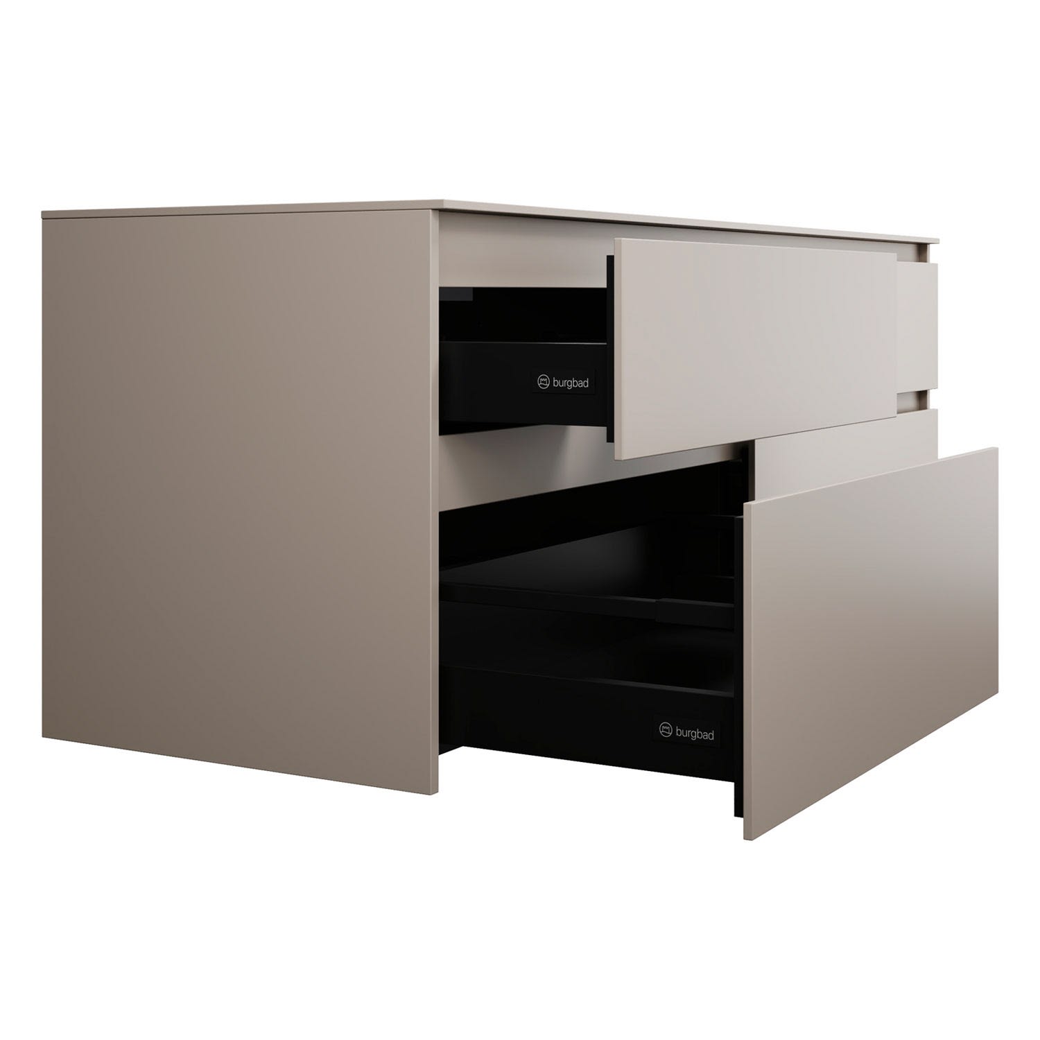burgbad Lin20 Waschtischunterschrank mit Konsolenplatte 160 cm, 4 Auszüge, Beckenausschnitt links