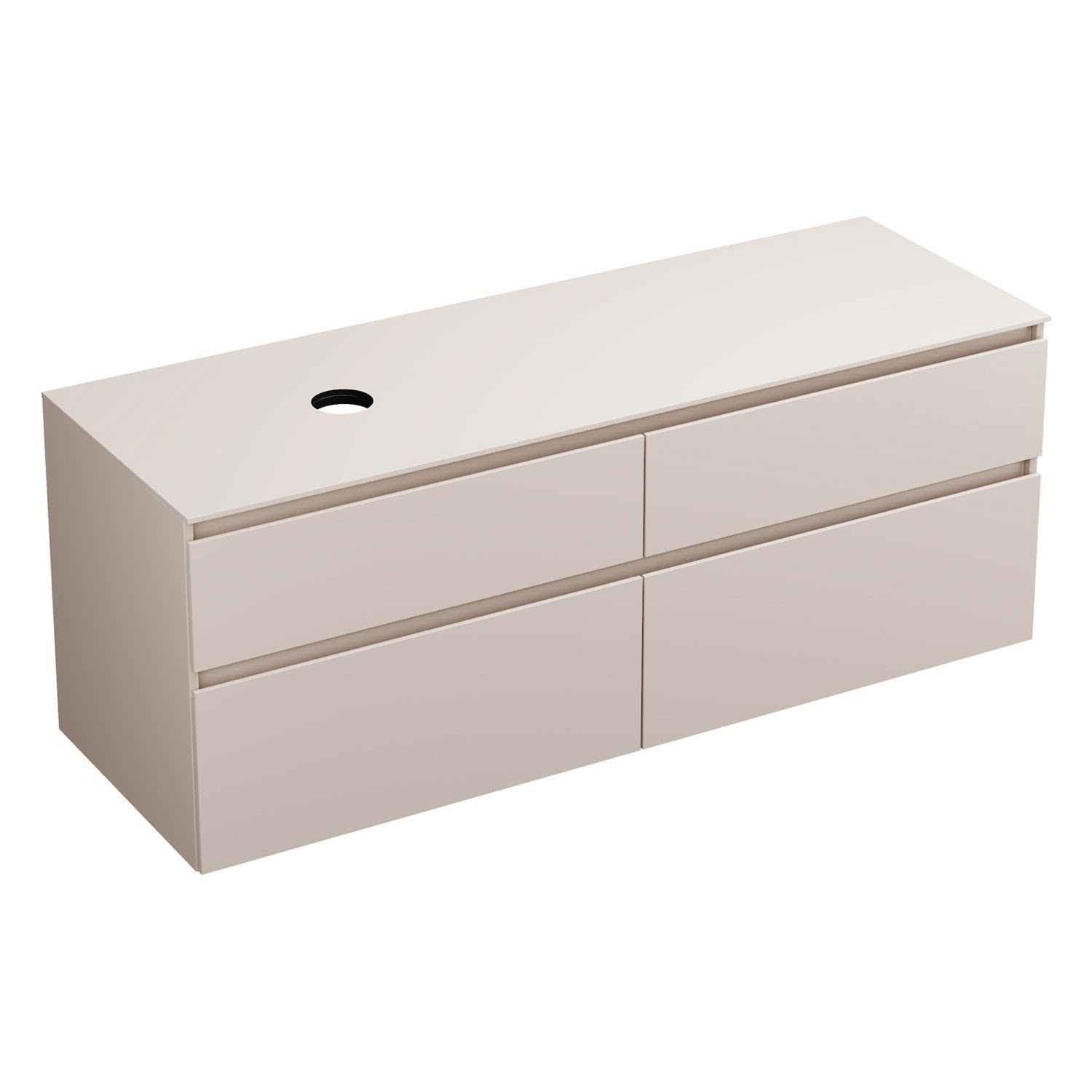 burgbad Lin20 Waschtischunterschrank mit Konsolenplatte 160 cm, 4 Auszüge, Beckenausschnitt links