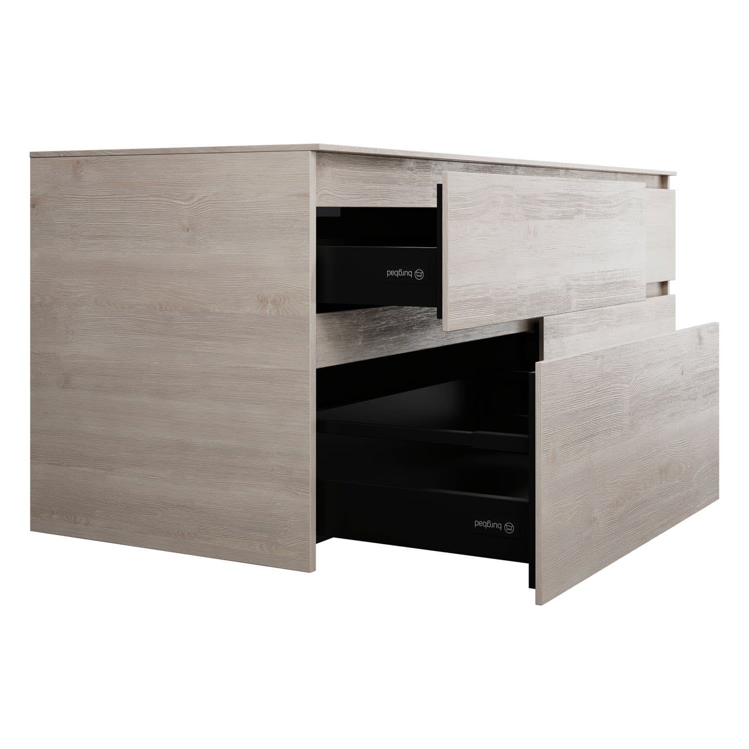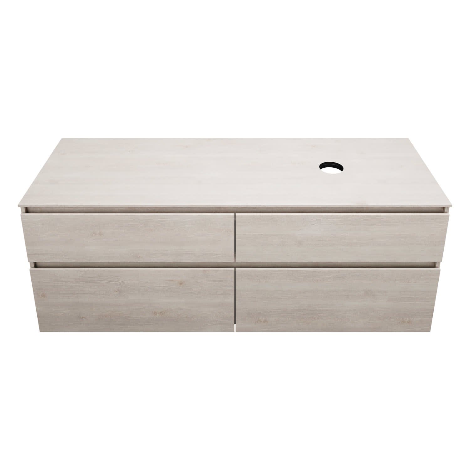 burgbad Lin20 Waschtischunterschrank mit Konsolenplatte 160 cm, 4 Auszüge, Beckenausschnitt rechts